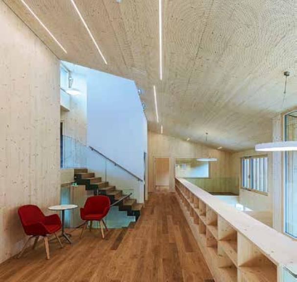 -Poliittisesti Salzburgin alueella on helppo ajaa julkista puurakentamista, koska tältä alueelta löytyy kaikki raaka-aineesta valmiisiin puurakentamisen tuotteisiin ja työvoimaan. Kun paikallisuutta ja ekologista rakentamista arvostetaan yhtä enemmän, puurakentaminen sai kannatusta kaikissa kunnan poliittisissa ryhmissä Salzburgin aluehallinnossa.