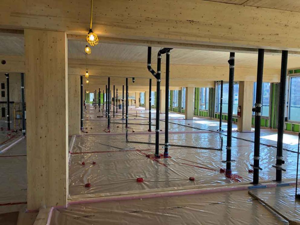 Dauost kuvaa kohteen rakentamista hienoksi projektiksi. – Oli mielenkiintoista nähdä, että puisten pilarien ja palkkien asentamisessa oli samankaltaisuuksia teräsrakenteiden asentamiseen. Esivalmistetut elementit olivat helppoja ja nopeita asentaa. Puurakenteiden esivalmistus ja täsmälliset toimitukset nopeuttivat rakentamista ja lyhensivät työmaan odotusaikoja. Esivalmistusta tulee edelleen kehittää. Sitä voidaan hyödyntää monissa eri kohdissa, kuten LVI- ja sähköasennuksissa, joille voidaan tehdä valmiit työstöt.