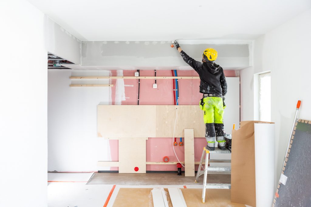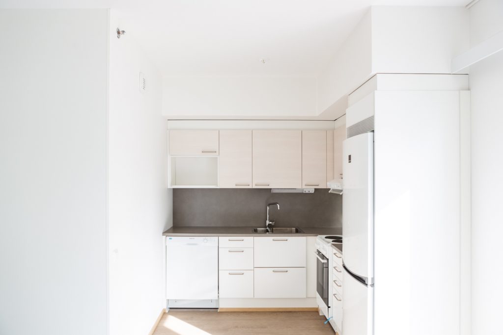 Kuva 3. Eri rakentamisen vaiheet, missä äänimittauksia tehtiin: huoneistot osin levytettyinä, läpiviennit tiivistämättä, ovet asentamatta (kuva vasemmalla), seinät levytetty ja tiivistetty, ovet asennettu (kuva keskellä) ja asunnot valmiina ja kalustettuina (kuva oikealla).