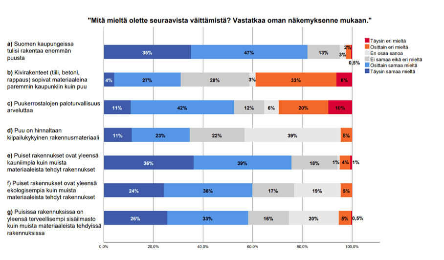 Lauri Metsärannan tutkimuksen tulokset ovat linjassa viime viikolla julkaistun ympäristöministeriön teettämän kyselyn tuloksien kanssa, jonka mukaan valtaosa suomalaisista haluaa, että oma kotikunta rakentaisi enemmän puusta.