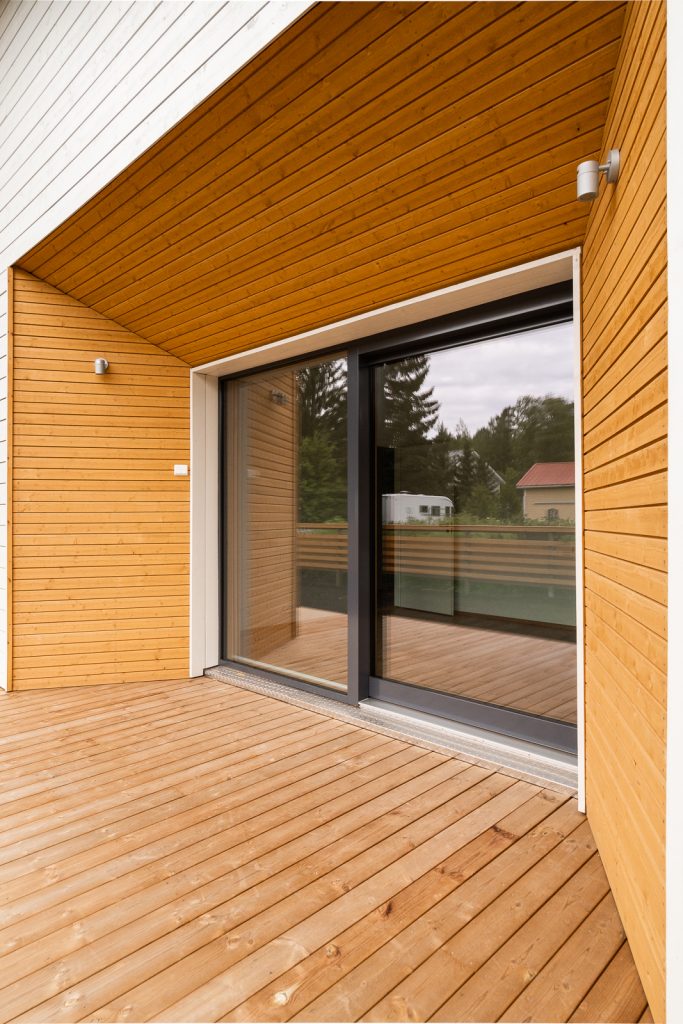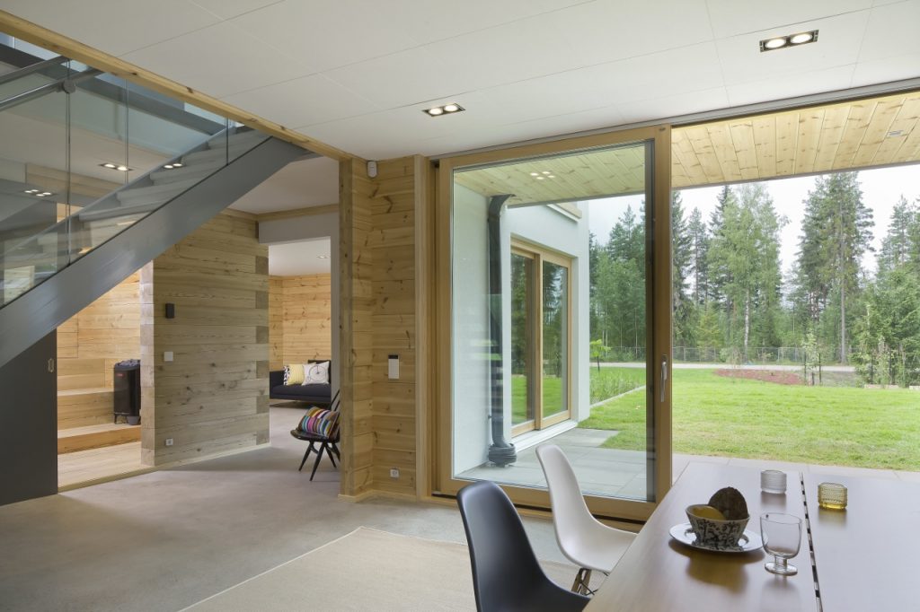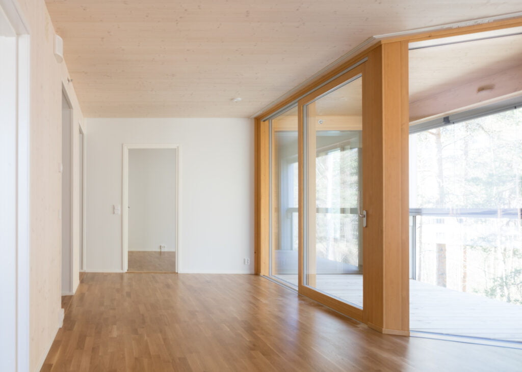 Näin ollen Profinin lasiliukuseinät ovat erinomainen valinta massiivipuutaloihin. Vikströmin mukaan kohteissa, joissa massiivipuurakennetta ei haluta verhoilla ääntä eristävällä lisärakenteella, isot ikkunat ja lasiliukuseinä voivat olla peräti ainoa vaihtoehto kompensoimaan ääneneristysvaateiden täyttämiseksi.