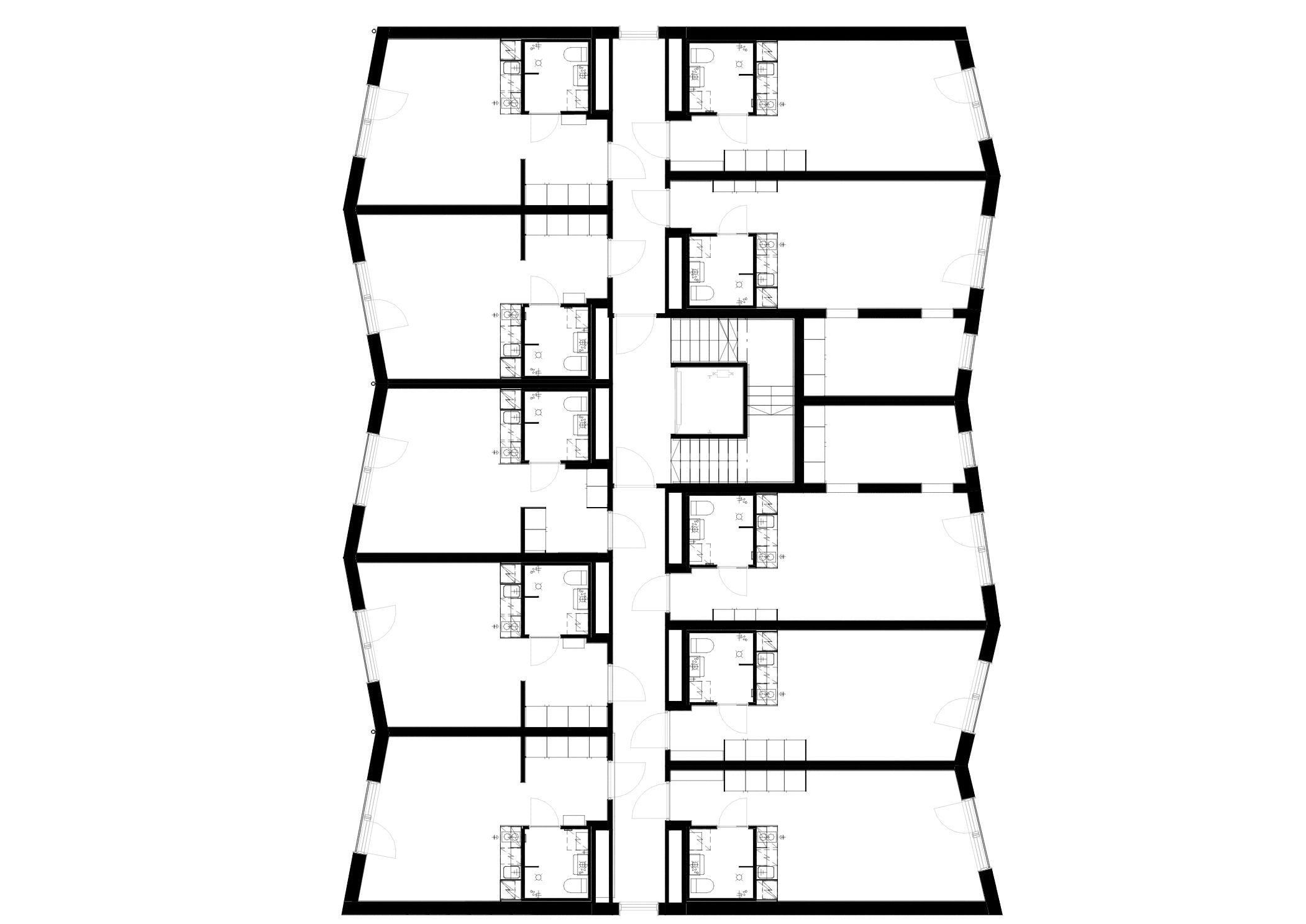TOAS KAUPISSA ON 8 KERROSTA. Betonirunkoisessa maantasokerroksessa sijaitsevat pyörävarasto pyöränhuoltopisteineen, irtaimistovarastoja, väestönsuoja, yhteissaunatilat, kerhotila ja pesula. Puurunkoisiin kerroksiin 2–8 sijoittuu yhteensä 70 kpl opiskelija-asuntoja.