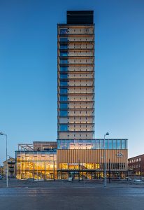 80 metriä korkea rakennus on yksi maailman korkeimpia puisia rakennuksia. Se sisältää muun muassa teatterin, taidegallerian, museon, kirjaston, konserttisaleja, ravintoloita ja hotellin.