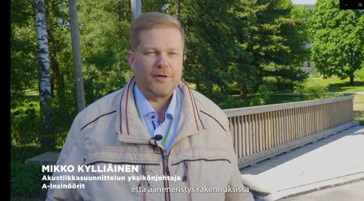 Videolla kerrotaan kuinka puurunkoisen asuinkerrostalongon erityispiirteet huomioidaan jo suunnitteluvaiheessa, ja lopputuloksena on ääneneristävyydeltään laadukkaita ja akustiikaltaan miellyttäviä koteja. Puukerrostalojen asukaskyselyissä korostuvat asuntojen hiljaisuus ja miellyttävä akustiikka.