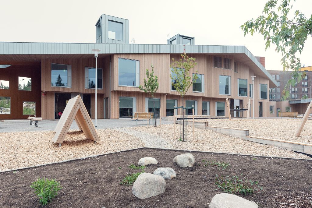 Isokuusen päiväkoti ja koulu, Tampere. Arkkitehtisuunnittel HIMLA arkkitehdit Oy. Kuva Okko Sorma.