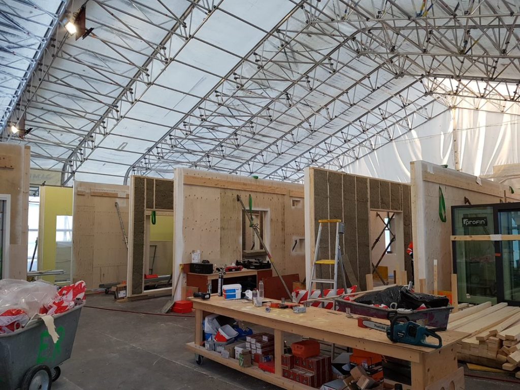 Käytetty rakennejärjestelmä on suurelementtijärjestelmä, jossa LVL-X-seinäelementit ja CLT-vaakaelementit toimivat rakennuksen kantavina rakenteina. Massiivipuiset elementit varusteltiin sääsuojavalmiiksi rakennuspaikalle pystytetyssä sääsuojateltassa, josta elementit nostettiin ja asennettiin sääolosuhteiden salliessa. Rakennuksen sääsuojaus toteutettiin siirrettävien kattoelementtien avulla ja rakennusprosessin kosteudenhallinta Kuivaketju10-toimintamallilla.