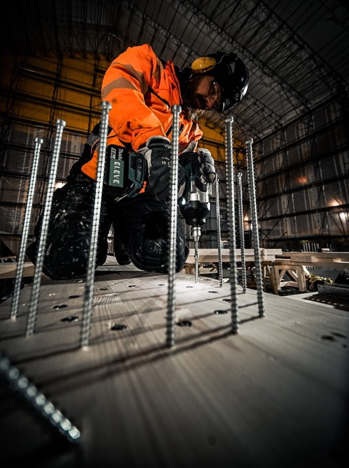 Kuva 10: Puu-puu -liitoksissa jokaiselle ruuville oli tehty pilottireiät jo tehtaalla, jolloin asennus oli selkeää (Eleve Oy; Leevi Tuunainen)
