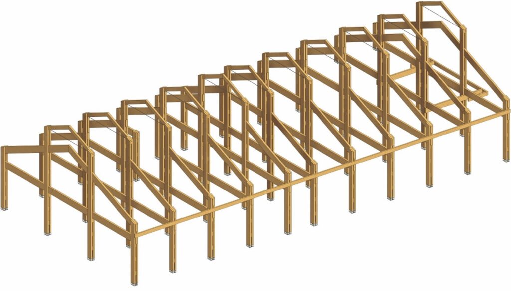 Tässä artikkelissa käsitellään rakennuksen kaksikerroksisessa primäärirungossa käytettyjä voimaliitoksia sekä rakennuksen jäykistysjärjestelmää. Kohde on esitelty Puu-lehdessä 2/23.