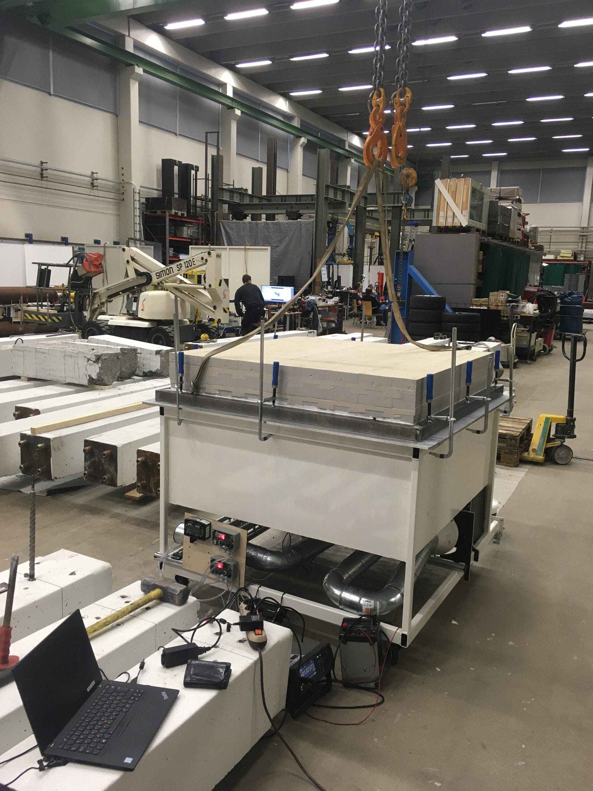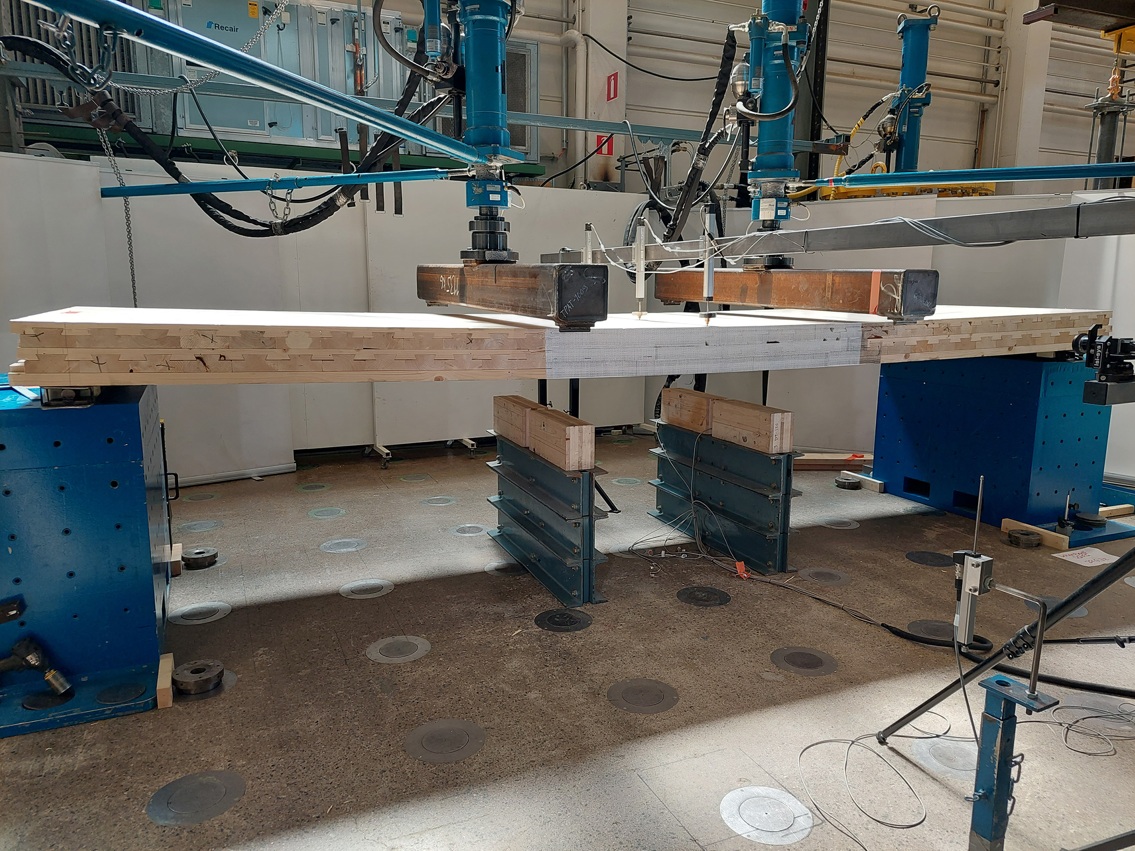Lisäksi materiaaleille tehtiin vertailevat taivutuskokeet Tampereen yliopiston rakennustekniikan laboratoriossa kesäkuussa 2022 ja maaliskuussa 2023. Vertailtavana oli CLT:n ja erilaisten DWBE-kokoonpanojen (5-kerroksiset, tapitetut ja 3-kerroksiset versiot) testikappaleita (paksuus 200 mm, leveys 1 450 mm, pituus 5 075 mm). Taivutuslujuus ei DWBE-kokoonpanoissa vastannut odotuksia, joten suunnitelmia oli tarkistettava ja parannettava. Viimeisin lohenpyrstölevyn lamelliratkaisu pääsi testaukseen syyskuussa 2023 lupaavin tuloksin. Taivutustestien tulokset julkaistaan patenttikäsittelyn jälkeen.