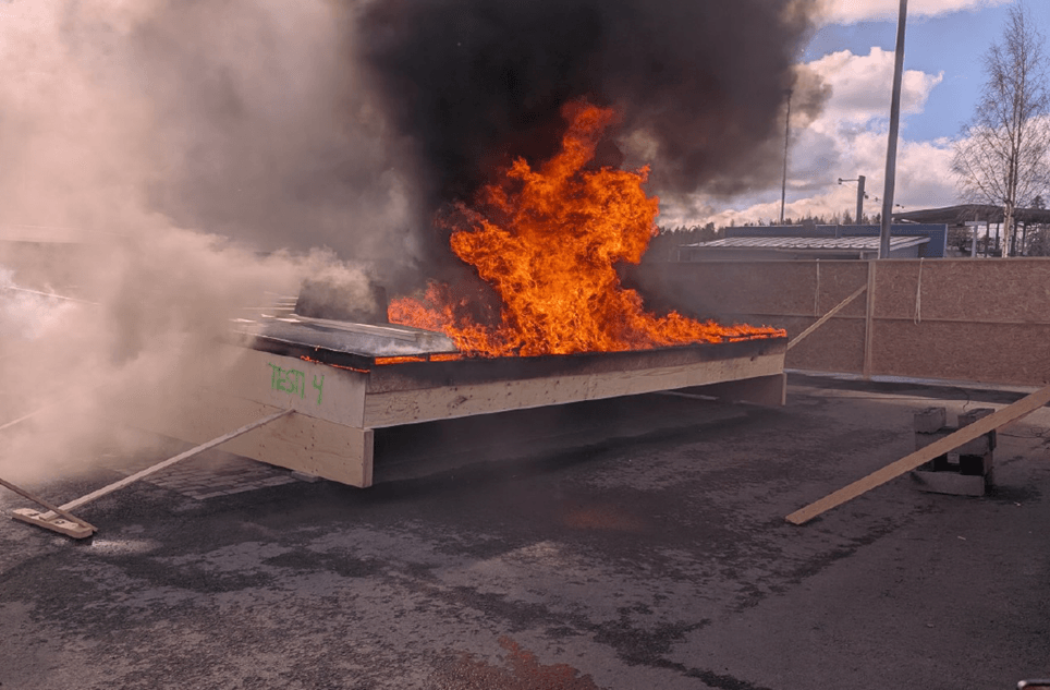Keskeinen toimialaa vaivannut tulkintakysymys on ollut yläpuolisen palon tulkinta ja mitoittaminen eri tilanteissa. Yläpuolista paloa ei ole määritelty paloasetuksessa eikä sen toteamiseksi ole olemassa testitapaa. Mitoituskäytäntöjen selkeyttämiseksi Puutuoteteollisuus on toteuttamassa hanketta, jonka tarkoituksena on testata yleisesti käytettyjen kattoelementtituotteiden toimintaa palotilanteessa, jossa tuli on päässyt jo leviämään katon tuuletusonteloon. Toinen hankkeen keskeinen tavoite on esittää testaustapa yläpuolisen palon kokeelliseen osoittamiseen. Kattoelementin koeistaminen palolaboratoriossa perinteisessä uunissa todettiin asiantuntijoiden toimesta haastavaksi ja tästä syystä testaus toteutettiin kenttäkokeena.