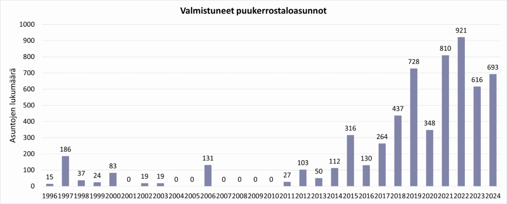 Source: ”A Comprehensive Statistical Analysis of Multi-Story Timber Residential Buildings in Finland (1995–2025)” Prof. Dr. Markku Karjalainen ja Dr. Hüseyin Emre Ilgın, Arkkitehtuurin yksikkö, rakennetun ympäristön tiedekunta, Tampereen yliopisto, Tampere, Suomi
