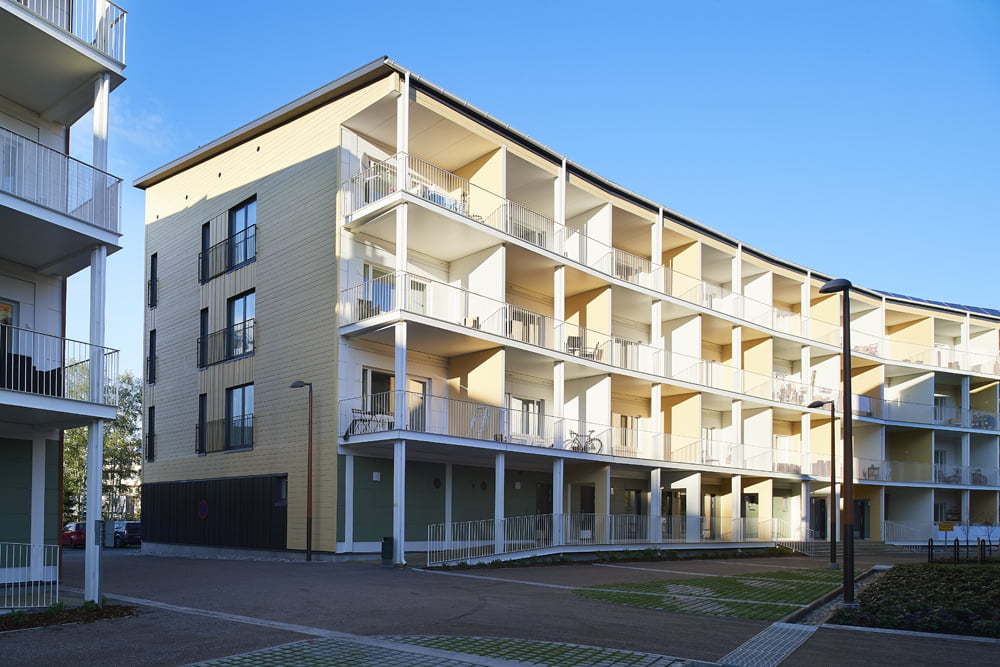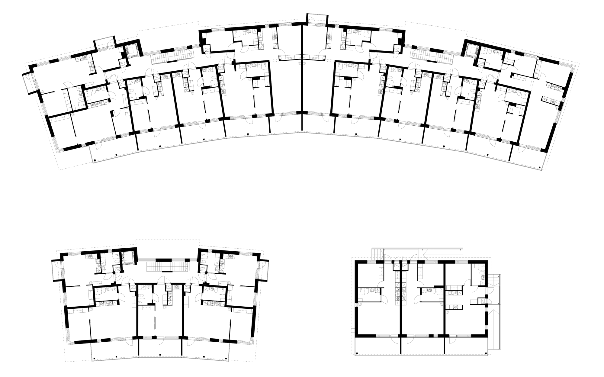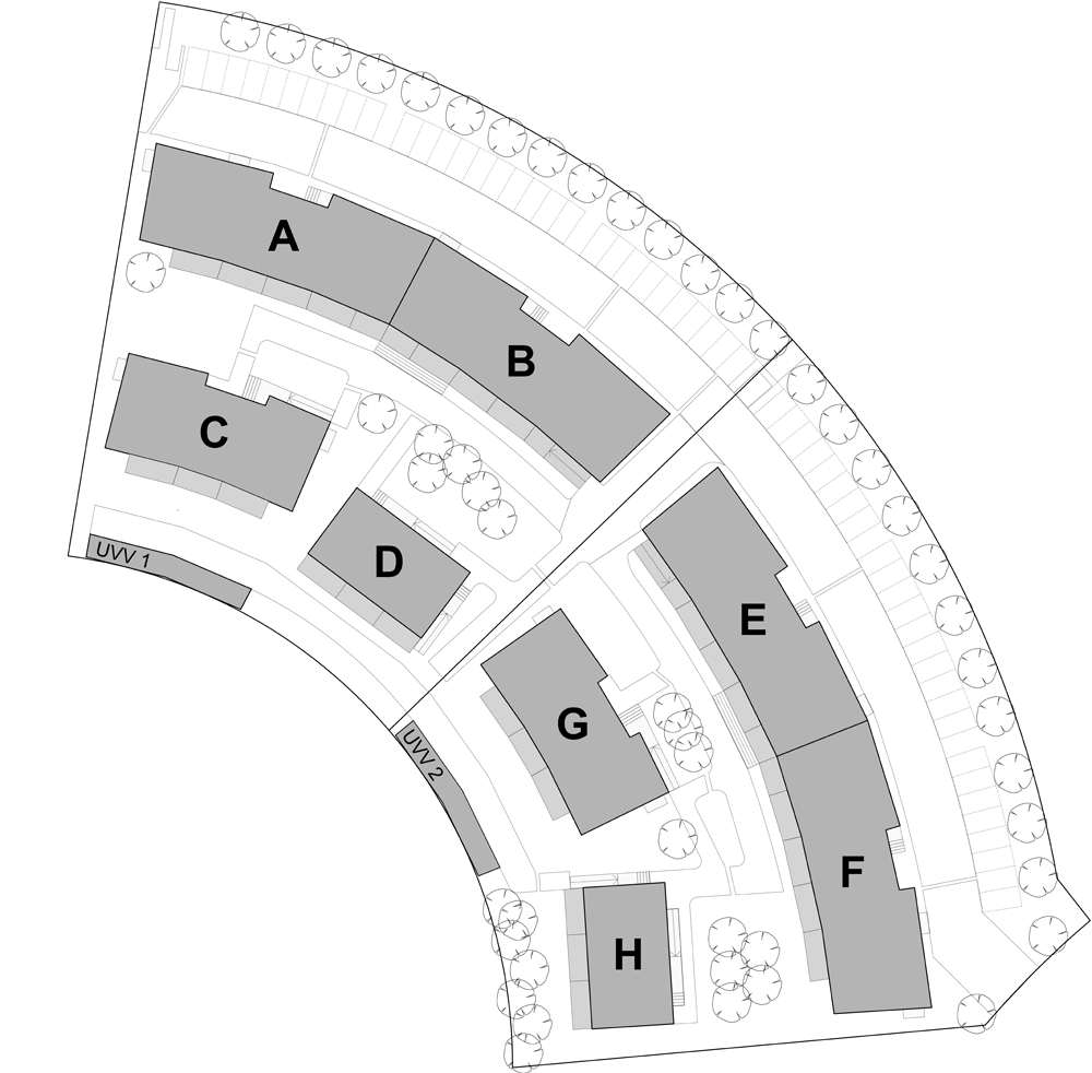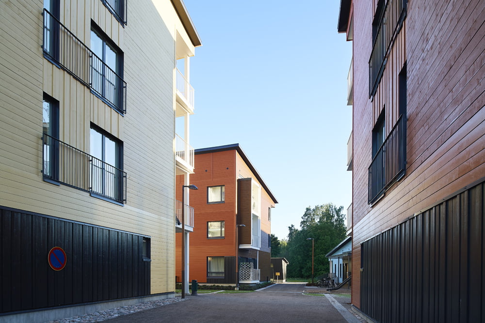 Talot ryhmittyvät kaareutuviin riveihin asemakaavan hengen mukaisesti. Kerrosluku pienenee ulompien kaarien neljästä kerroksesta kolmeen ja yhteen kerrokseen Perhosniityn puistoa kohden. Rakennusten kattomuoto mukailee tätä teemaa laskevana lappeena puistoa kohden. Sisemmällä asuintalojen kaarella rivitalot pykältävät niin, että pihalle muodostuu tarvittavat leikki- ja oleskelualueet. Kaavan vaatimuksen mukaisesti vierekkäisten rakennusten päävärit eivät ole keskenään samanvärisiä. Kokonaisuutta sitoo yhteen ensimmäisten kerrosten tummat pystypaneloinnit ja parvekkeiden vaaleat levyseinäosuudet. Osassa parvekkeiden väliseinistä löytyy rakennuksen pääväriä tuomassa vaihtelua muuten vaaleaan parvekevyöhykkeeseen.