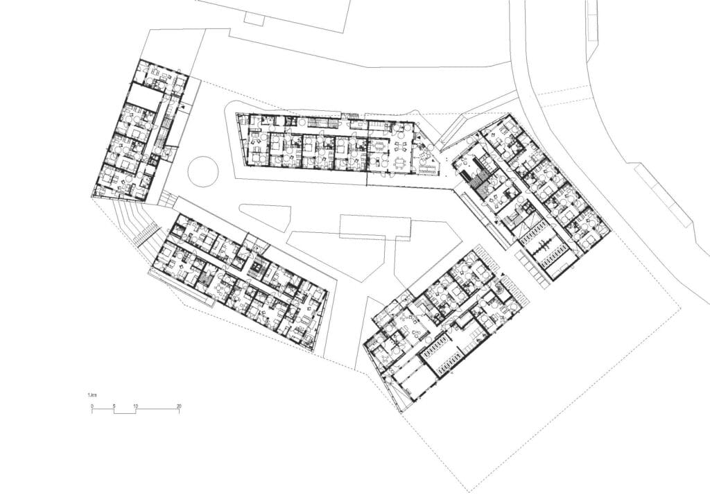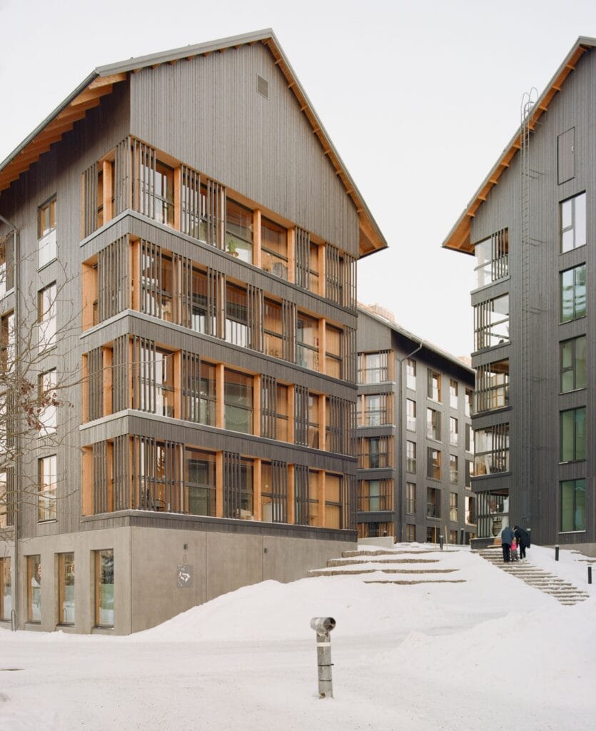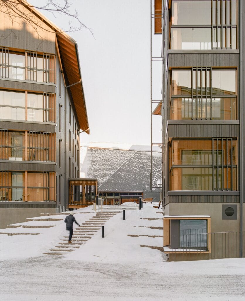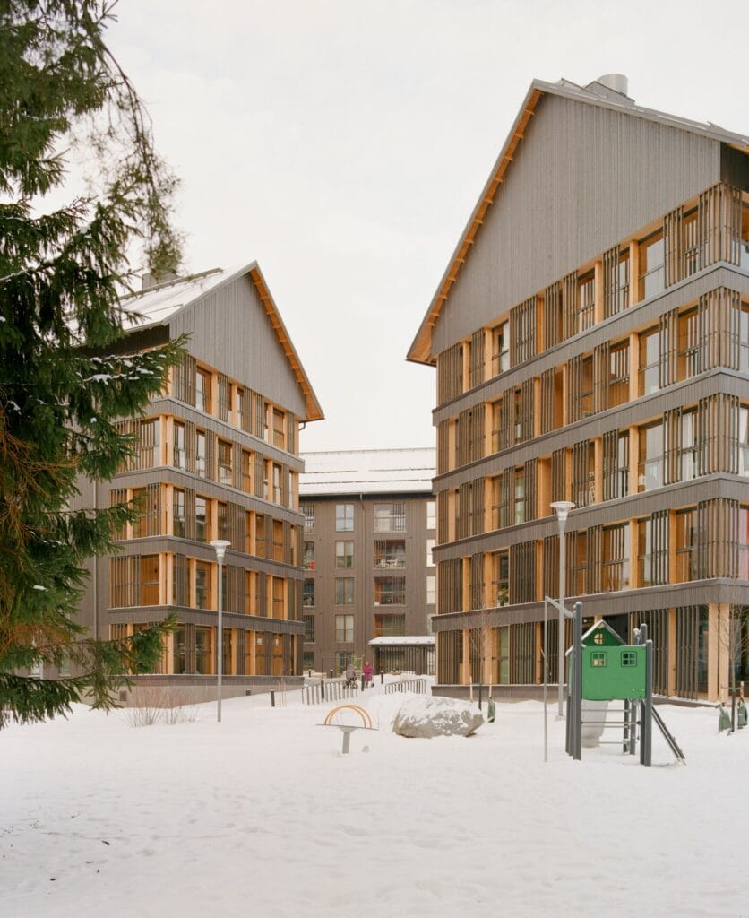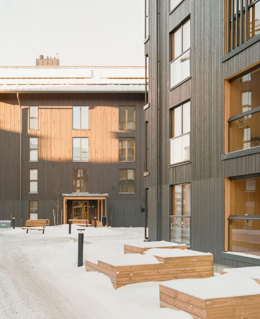 Viiden puurakenteisen CLT-tilaelementeistä valmistetun asuinkerrostalon muodostama asuntoreformi-kortteli luo uutta, yhteisöllisyyttä ja esteettömyyttä korostavaa kaupunkiasumista.