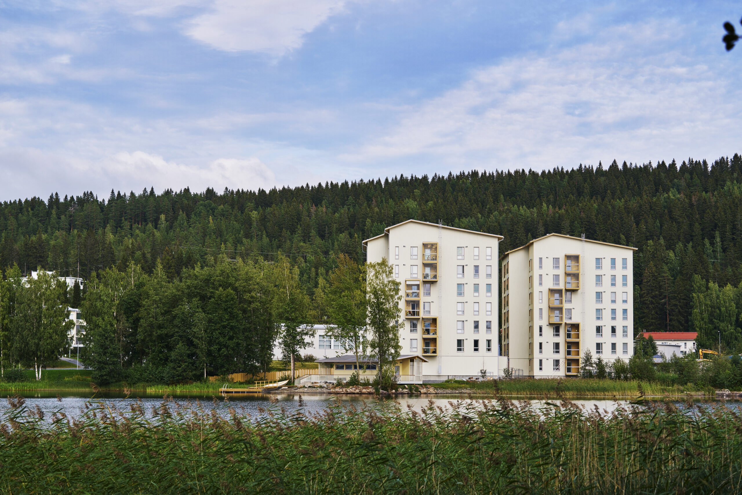 Rakentaminen alueella on pientalovaltaista. Talot ovat alueen ensimmäiset rantamaisemassa korostuvat kerrostalokohteet, joten niiden ilmeeseen kiinnitettiin huomiota. Pykältävät kaksi kerrostaloa asemoitiin tontille limittäin julkisivut väliilmasuuntiin siten, että asunnot pääsevät hyödyntämään Kallaveden upeita maisemia mahdollisimman paljon eivätkä rakennukset tuki näkymiä suhteessa naapureihin. Korkeiden ikkunaaukkojen välityksellä maisema tulvii asuntoihin, vaikka ikkunapintaala on optimoitu erillisen jäähdyttämistarpeen välttämiseksi. Näkymää reunustaa asunnoissa rakentajan tuotekehitysprosessin ja neuvottelun tuloksena valikoidut harkitut puupinnat: ikkunoita kehystävät paksut listat ja valkolakattu CLT-kattopinta.