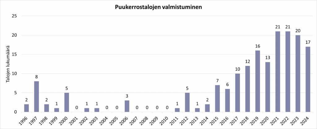 Mukana tilastossa on vähintään kolmekerroksiset asuinkerrostalot, joissa kantava runko on pääosin puinen.