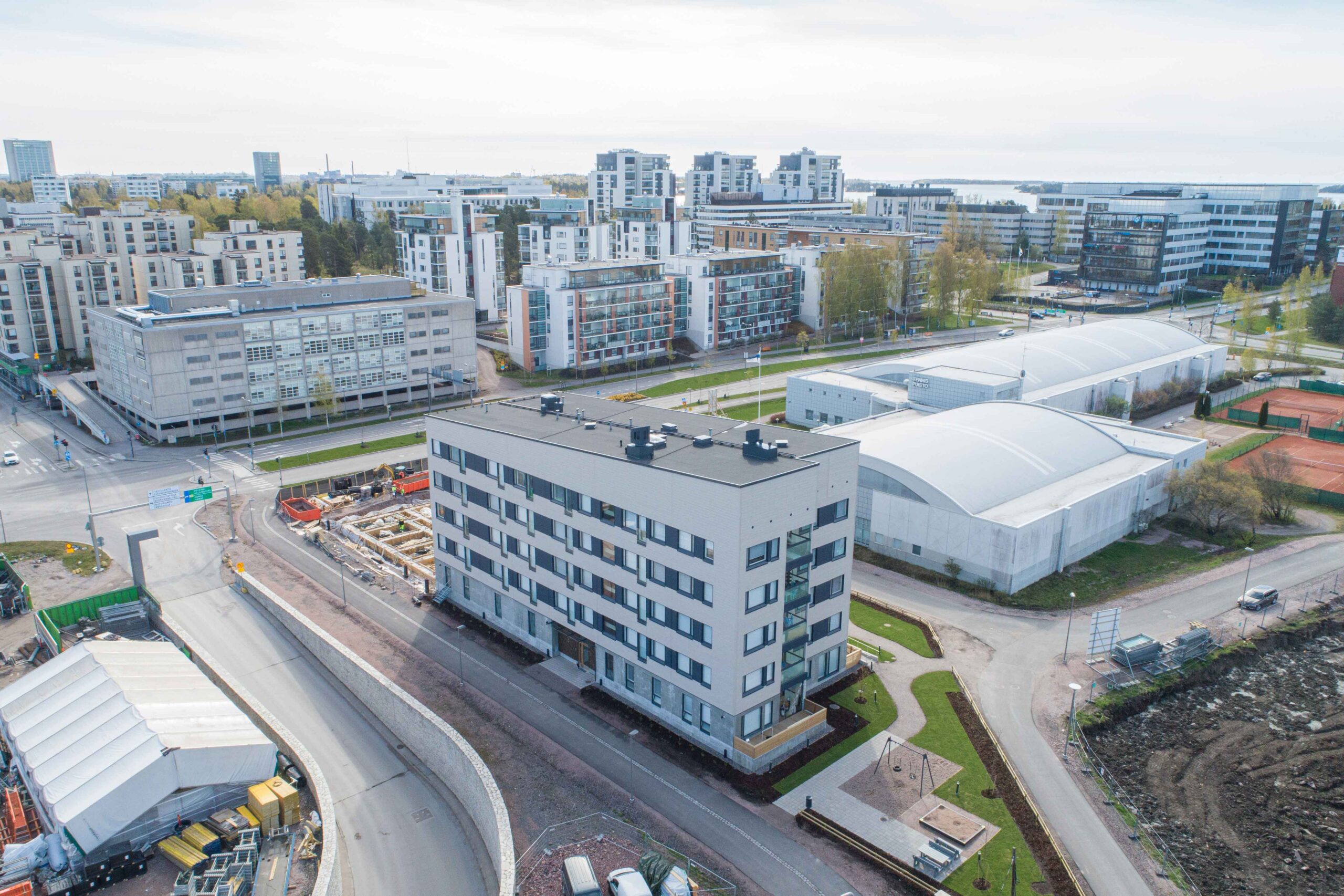 Rakennus on kuusikerroksinen ja se liittyy 1-kerroksisen ulkoiluvaraston välityksellä samalle tontille rakenteilla olevaan 13-kerroksiseen opiskelijataloon. Rakennukset on suunniteltu muodostamaan yhdessä arkkitehtoninen kokonaisuus, joka tuo Tapiolan uudistuvaan keskustaan tämän päivän puurakentamista.