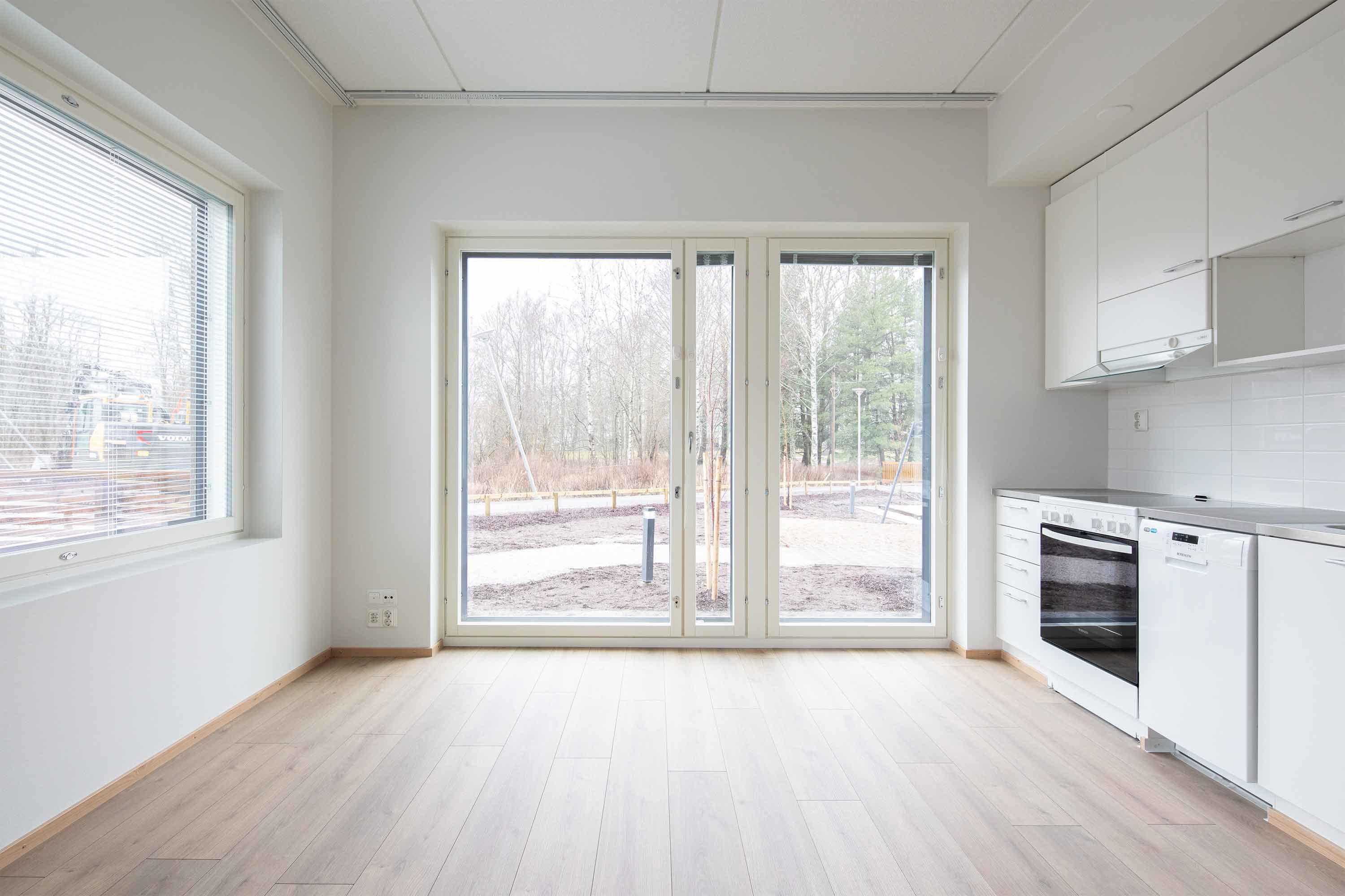 The building has 42 rental apartments with an average size of about 50 m2. Common spaces such as the sauna facilities, laundry room, meeting room and storage spaces are located on the ground floor.