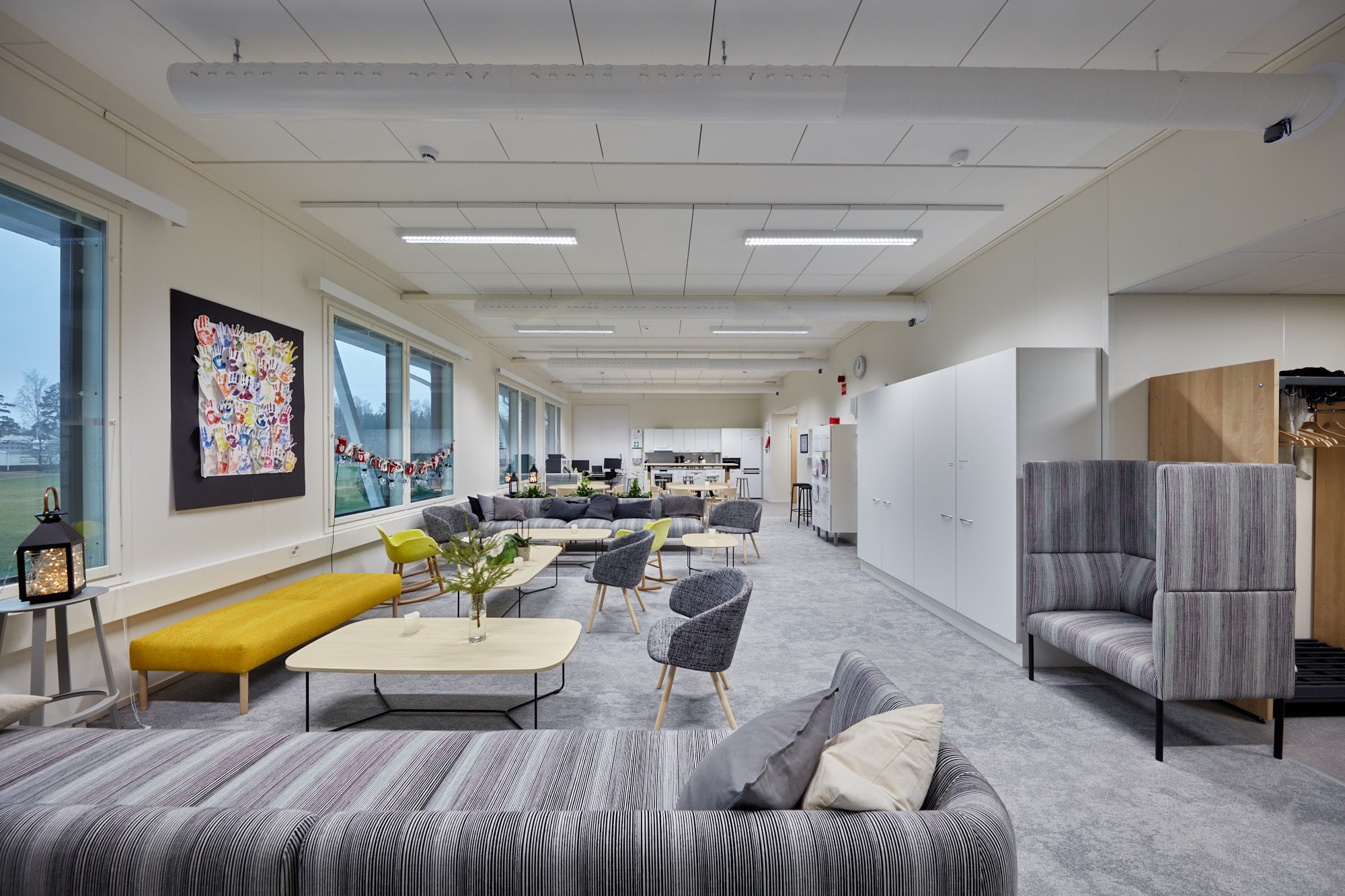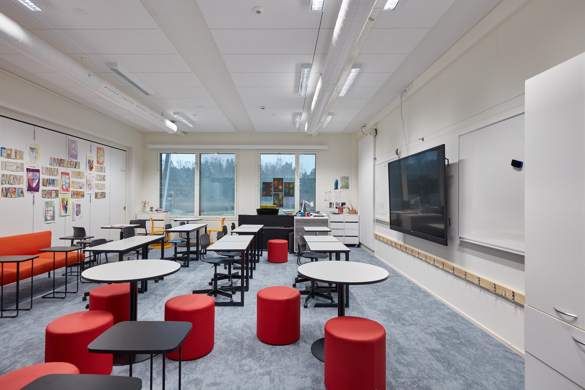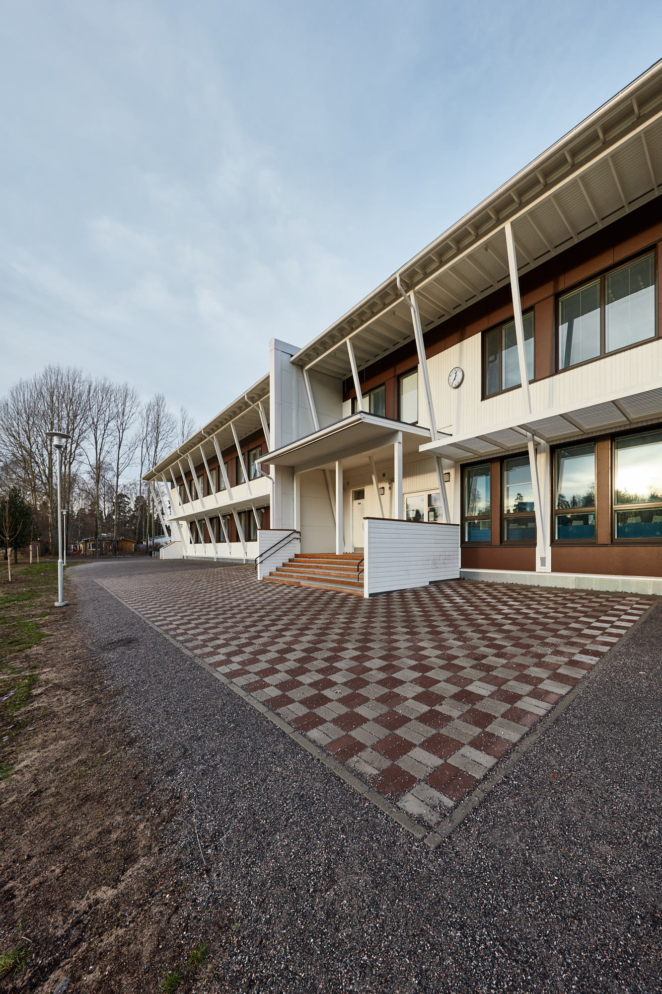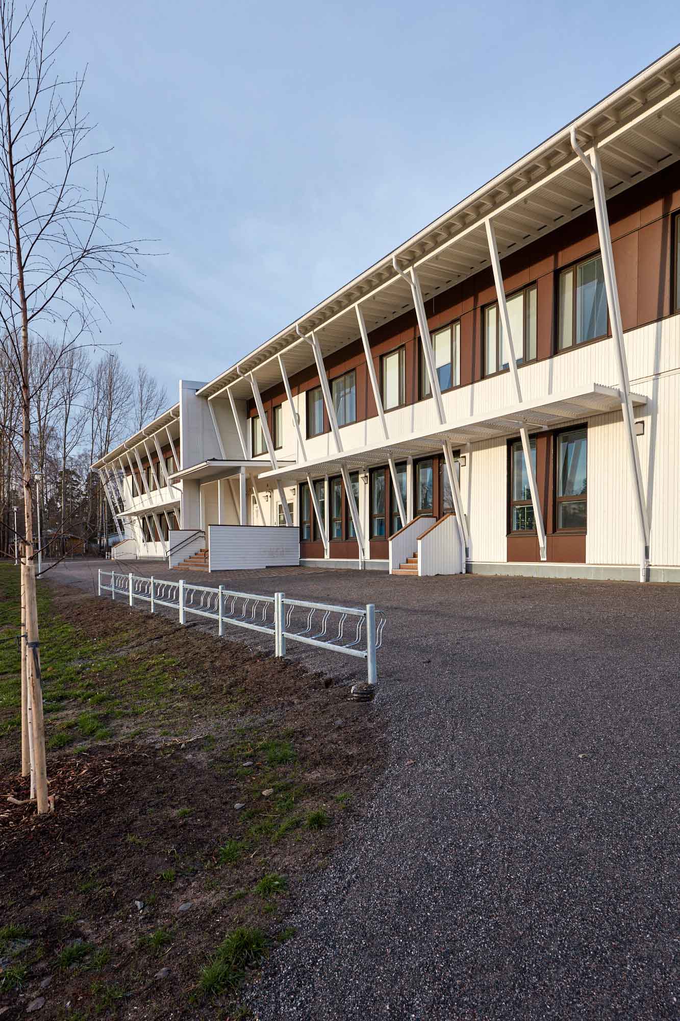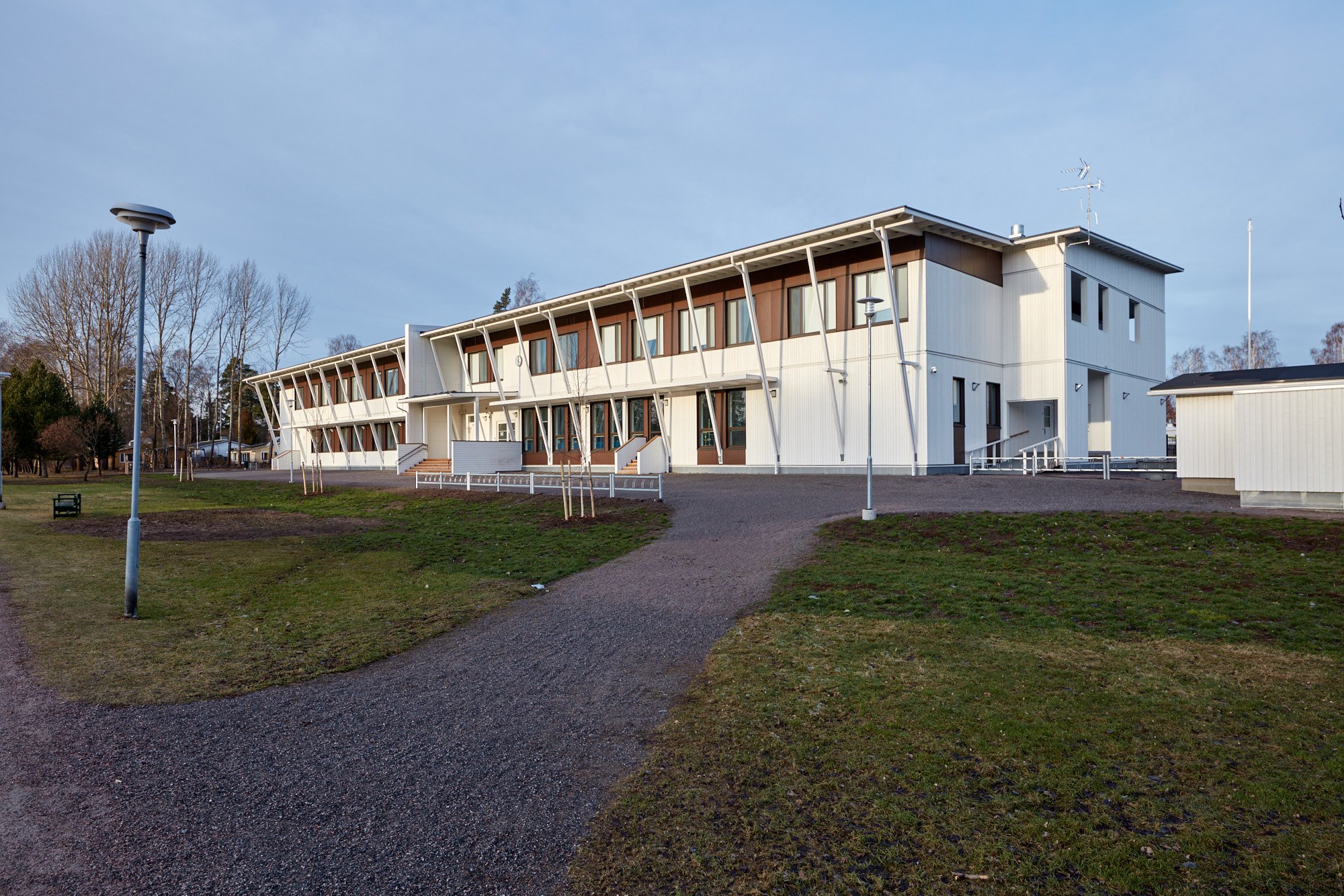 The building consists of 50 large modules that were preassembled at factory in spring 2019. Only installation and finishing were needed on site. The new school has room for 350 students, and the facilities also allow for pre-school education.