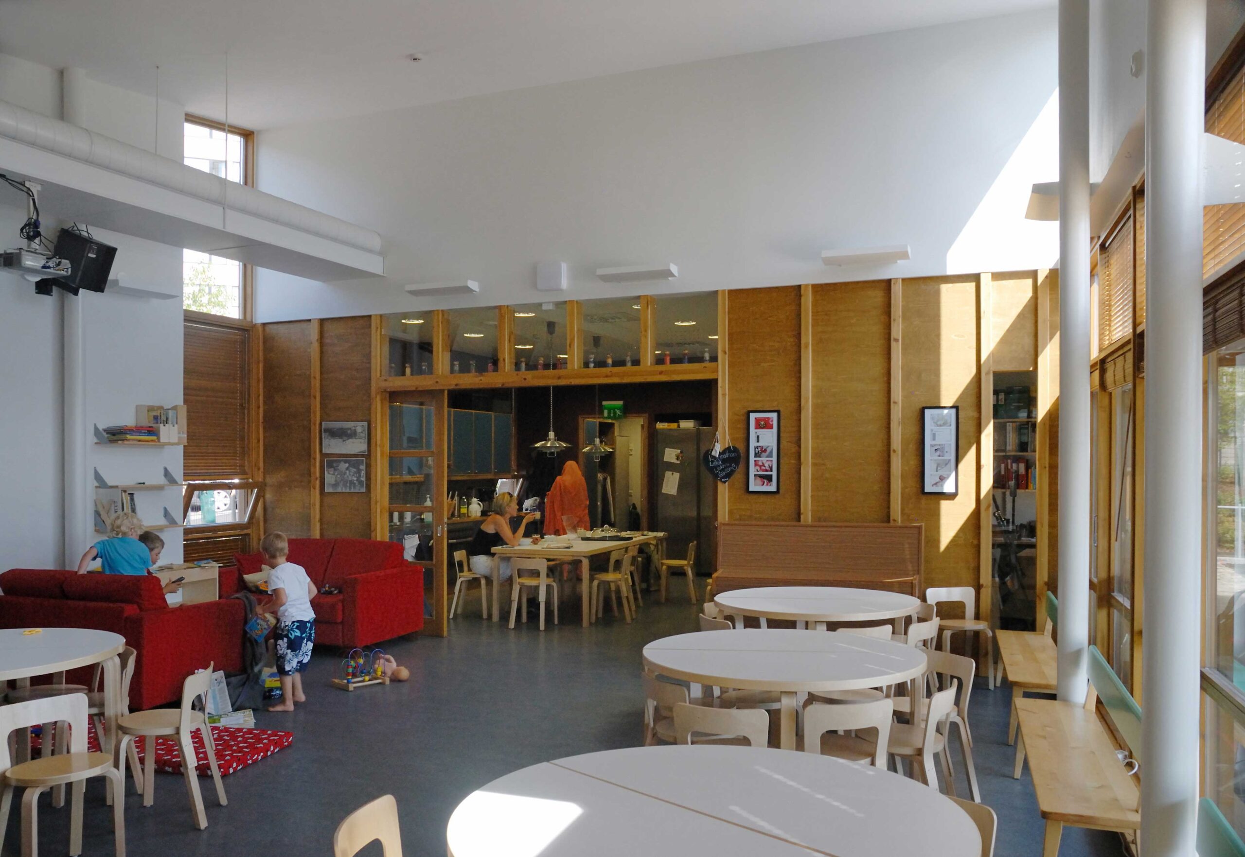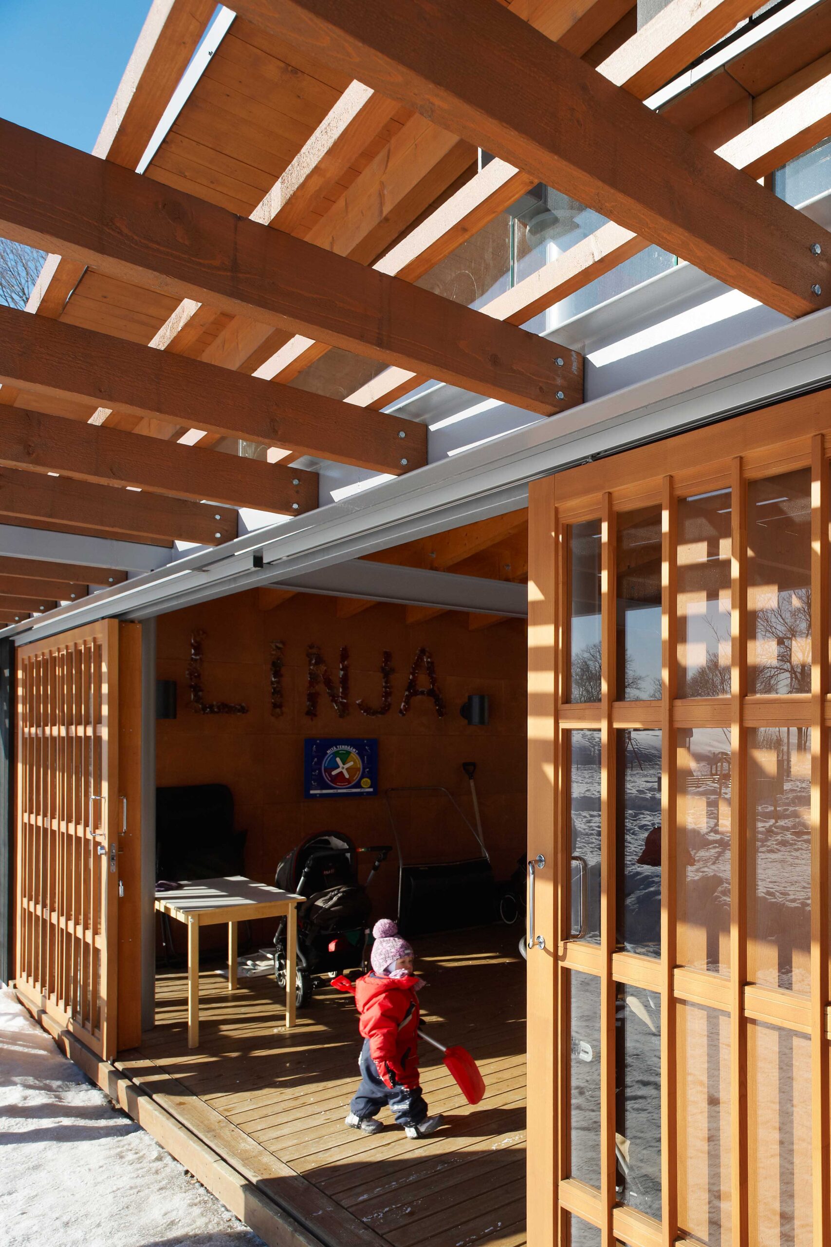 Rospuuttotilan kautta käydään sisälle rakennukseen. Koska päätilat liittyvät avoimesti toisiinsa, toiminnan valvonta on vaivatonta. Samalla rakennukseen on saatu ripaus juhlavuutta. Rakennuksessa on myös tilat henkilökunnan ideoimalle äiti-lapsi-toiminnalle.