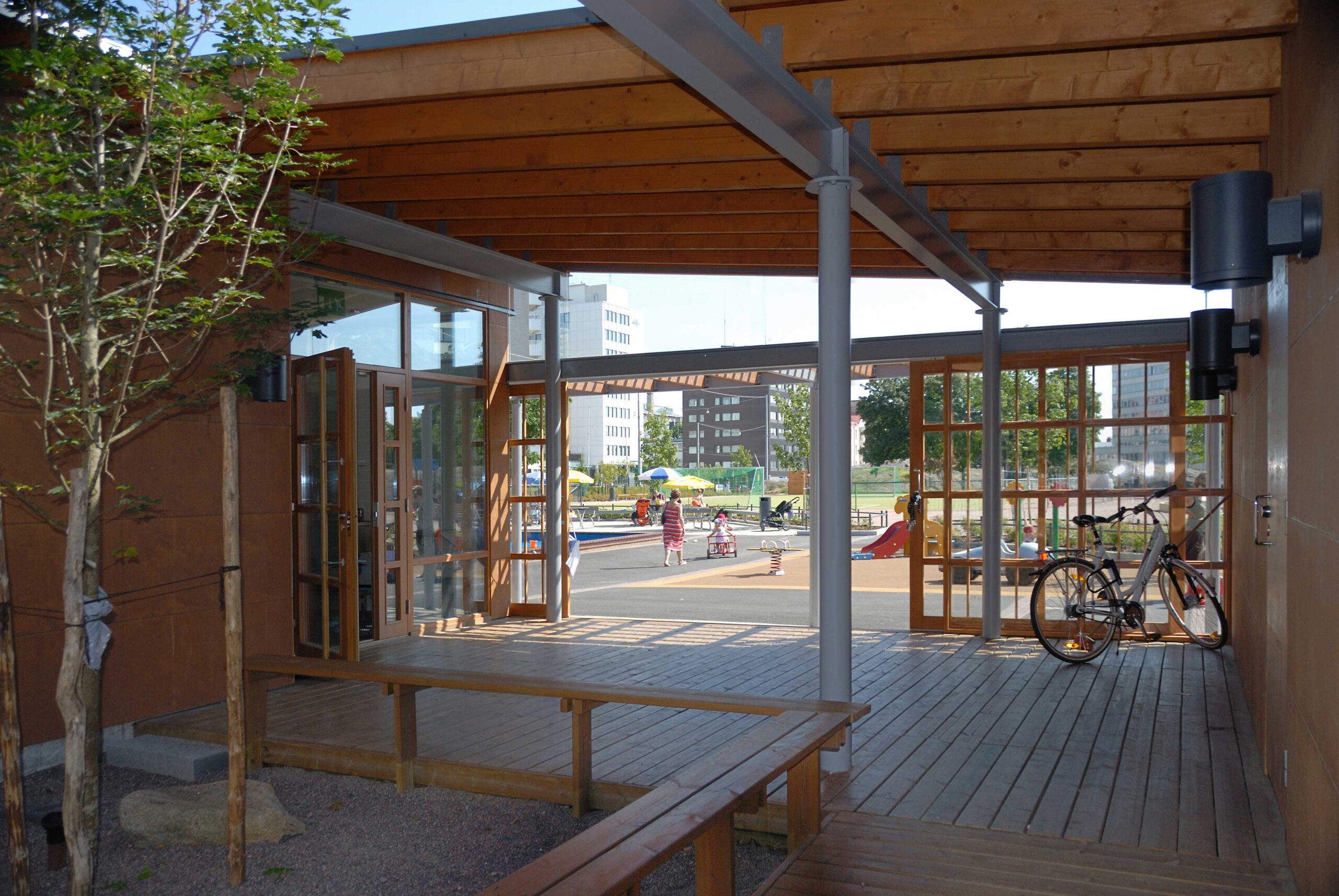 Suunnittelun alussa tehdyn Japanin-matkan vaikutus näkyy puistorakennuksessa. Perinteiseen japanilaiseen arkkitehtuuriin viittaavia piirteitä on materiaaleissa, hahmossa ja yksityiskohdissa. Koska japanilaisessa rakennuksessa on aina pieni sisäpuutarha, suunniteltiin myös rospuuttotilan yhteyteen sellainen.