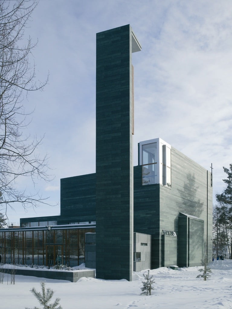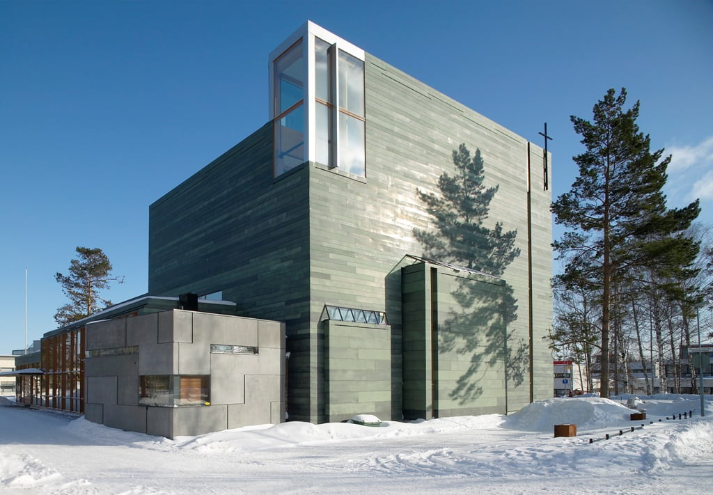 Kirkon päätilat on sijoitettu kadunkulmaan jo kaukaa havaittavaksi, tapuli erilleen kirkosta lähestymisnäkymien päätteeksi ja seurakuntasiipi arkisen toiminnan tiloineen Reposalmentien varteen. Puurakenteet ja erillinen kivisakasti kirkon kyljessä muistuttavat suomalaisesta kirkonrakennusperinteestä.