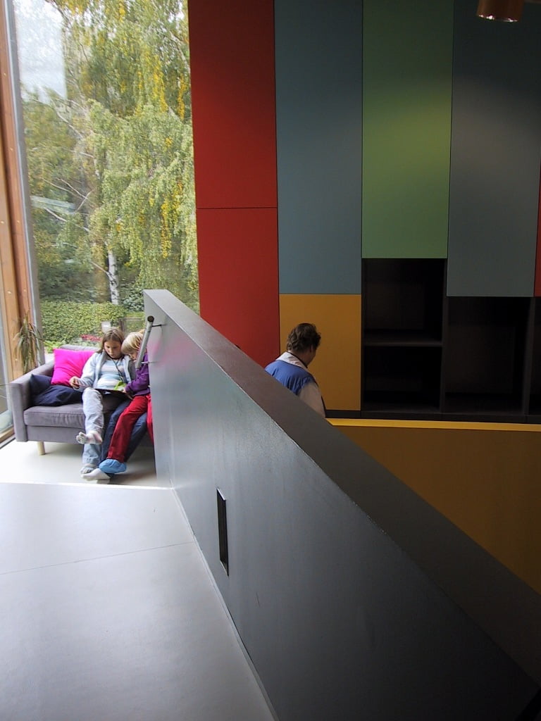 Leikkipuistorakennuksen valmistuttua ilmeni, että akustiikkaan tarvittiin lisävaimennusta. Akustisen suunnittelijan laskelmien mukainen vaimennuspinta toteutettiin katosta roikkuvilla “mittarimadoilla”. Lapset ristivät ne juustonaksuiksi.