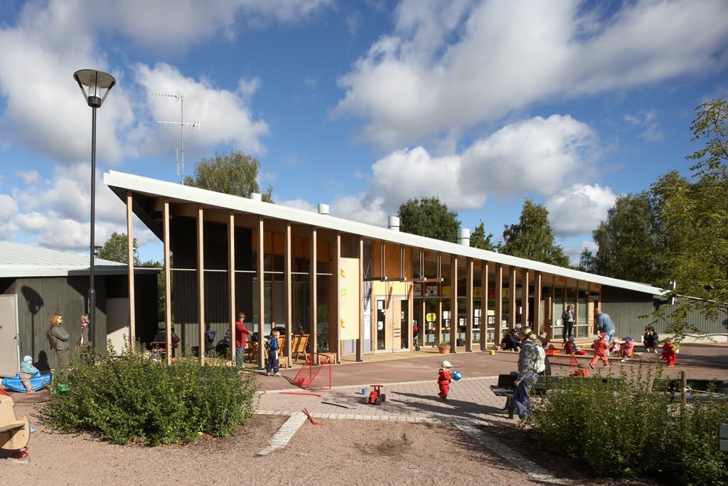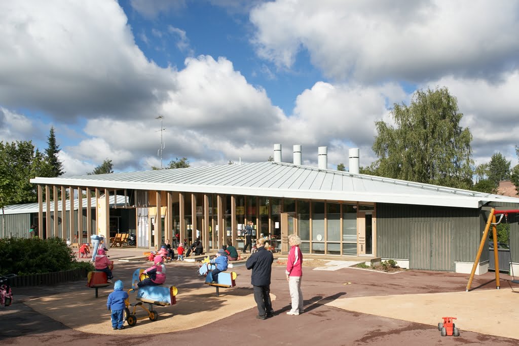 Etupellon asukaspuiston nurkkaan Yhdyskunnan- ja Etupellontien risteyksen tuntumaan sijoitettu rakennus muodostuu kahdesta katujen suuntaan suippenevasta, siipimäisestä kolmiosta. Kolmiot rajaavat kadut pois ja synnyttävät turvallisen lähipihan puiston puolelle sekä avaavat koko ulkoalueen yhtenäisenä tilana ilman nurkkien taakse jääviä katveita.