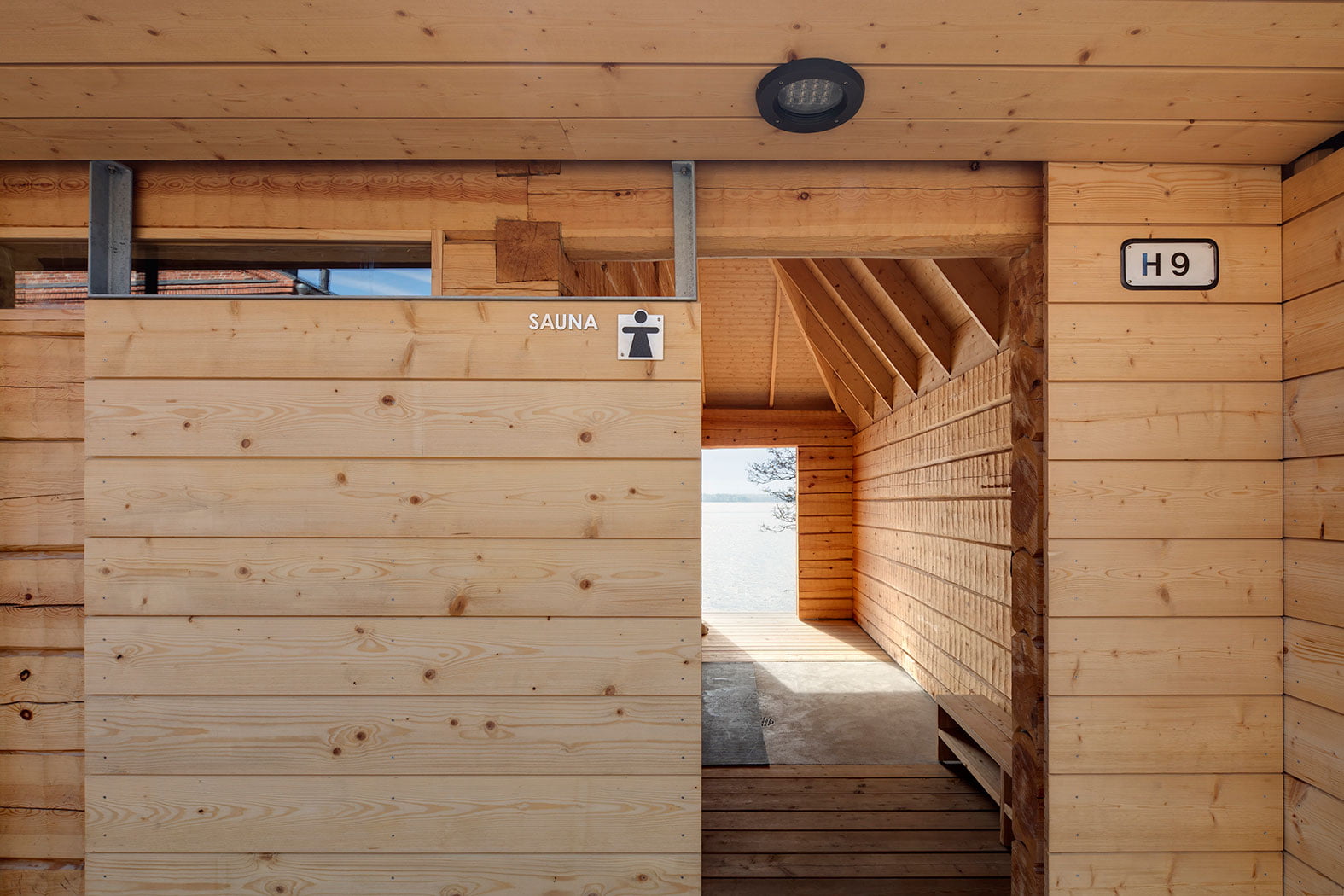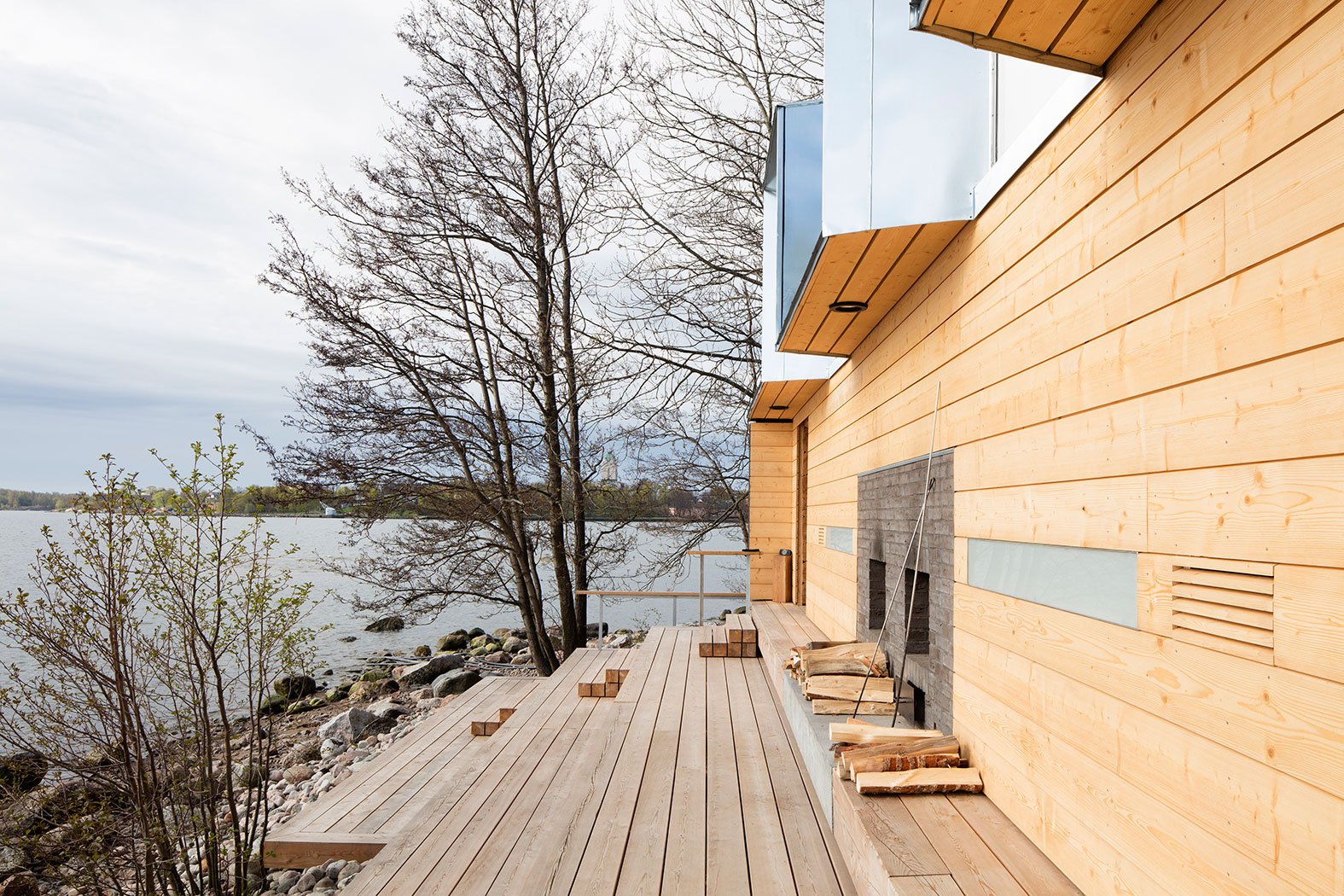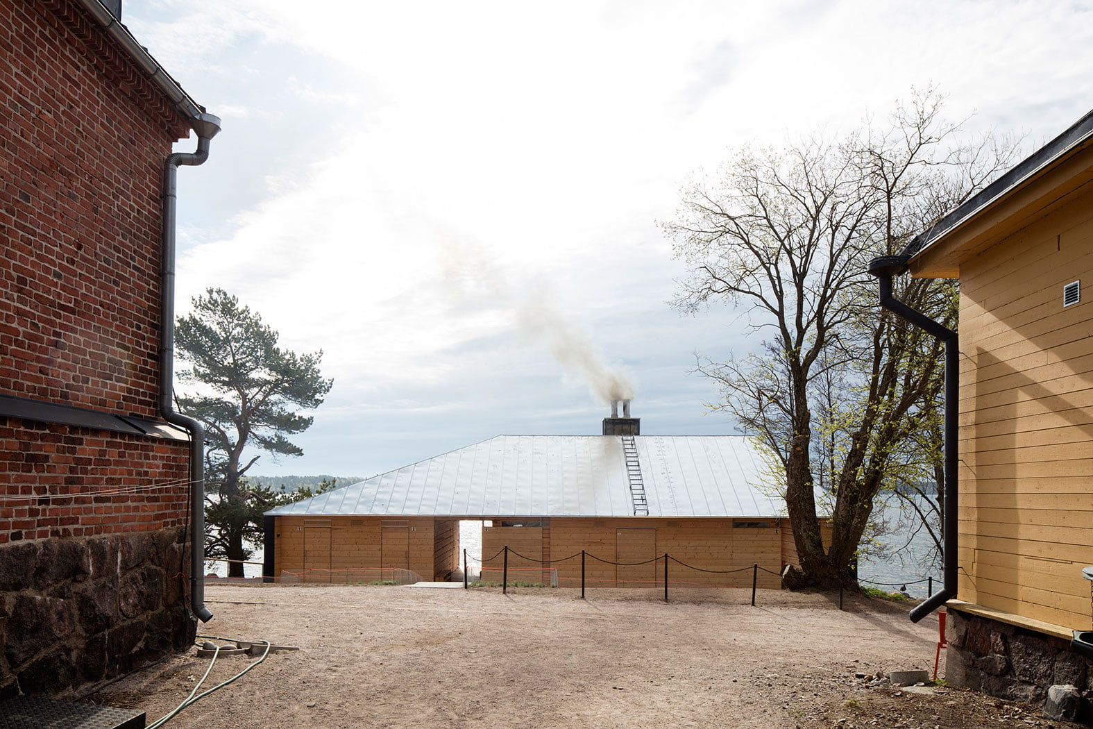 Massiivipuurakenteinen parvisauna luon tunnelmallisen tilan saunomiselle. Saunan parvelta avautuva näkymä saaristoon on kaunis ja rauhoittava. Saunan hirret on veistetty suomalaisesta männystä pieteetillä ja materiaalit ovat aitoina läsnä rakennuksen eri tiloissa. Saunan arkkitehtuuri sopeutuu historialliseen kokonaisuuteen, mutta edustaa ylpeästi omaa aikaansa, kestäen aikaa. Saunojen massiivisten puukiukaiden lämmittäminen tapahtuu ulkoa terassilta, jossa on myös mahdollisuus oleilla meren äärellä. Edessä avautuu saaristo ja oikealla Suomenlinnan silhuetti. Kaupungin vilske jää taakse.