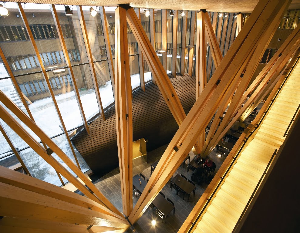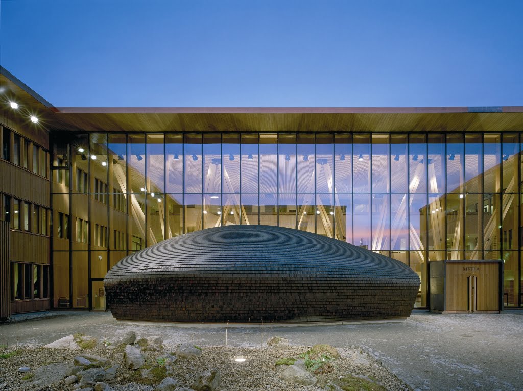 Vuonna 2002 järjestetyn arkkitehtuurikutsukilpailun erityisenä tavoitteena oli suomalaisen puun innovatiivinen käyttö. Rakennus onkin toteutettu rungoltaan ja täydentäviltä osiltaan valtaosin puusta. Kaikkia suomalaisia rakennuspuulajeja on pyritty käyttämään rakennuksessa. Runkorakenteet pilarit, palkit ja kotelolaatat ovat kuusiliimapuuta. Julkisivut tehtiin työmaalla vanerilla. Ulkokehän julkisivujen pystyrivat ovat kuupuurankarakenteisina elementteinä, jotka verhoiltiin ulkoa pystysuuntaisilla kuusilaudoilla ja sisäpuolelta kuusiliimapuuta.