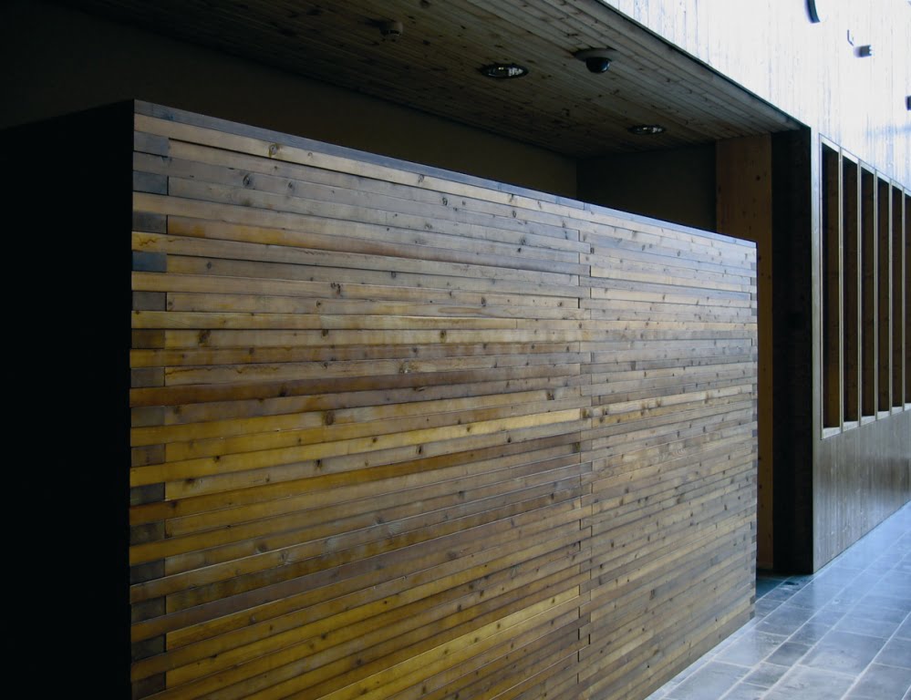 Rungon, julkisivujen ja täydentävien rakenteiden puupinnat on jätetty näkyviin verhoamattomina joko puunsuojakäsiteltyinä, kuultokäsiteltyinä, lakattuina, öljyttyinä, käsittelemättöminä tai näiden yhdistelmänä.