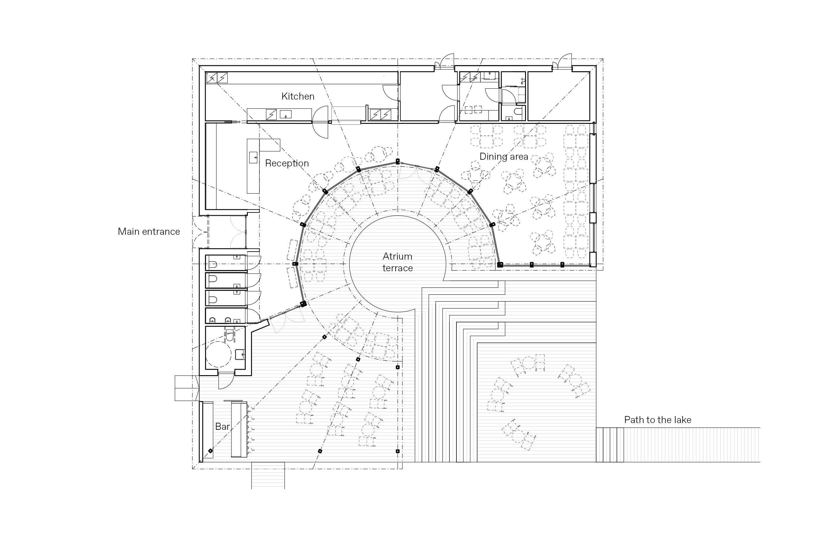 Saunaravintolan pääosassa ovat itse rakennusten lisäksi niistä avautuva järvimaisema sekä terassoidut ulko-oleskelualueet joista kelpaa seurata kesäisiä auringonlaskuja löylyjen tai korkeatasoisen ravintolaillallisten lomassa.