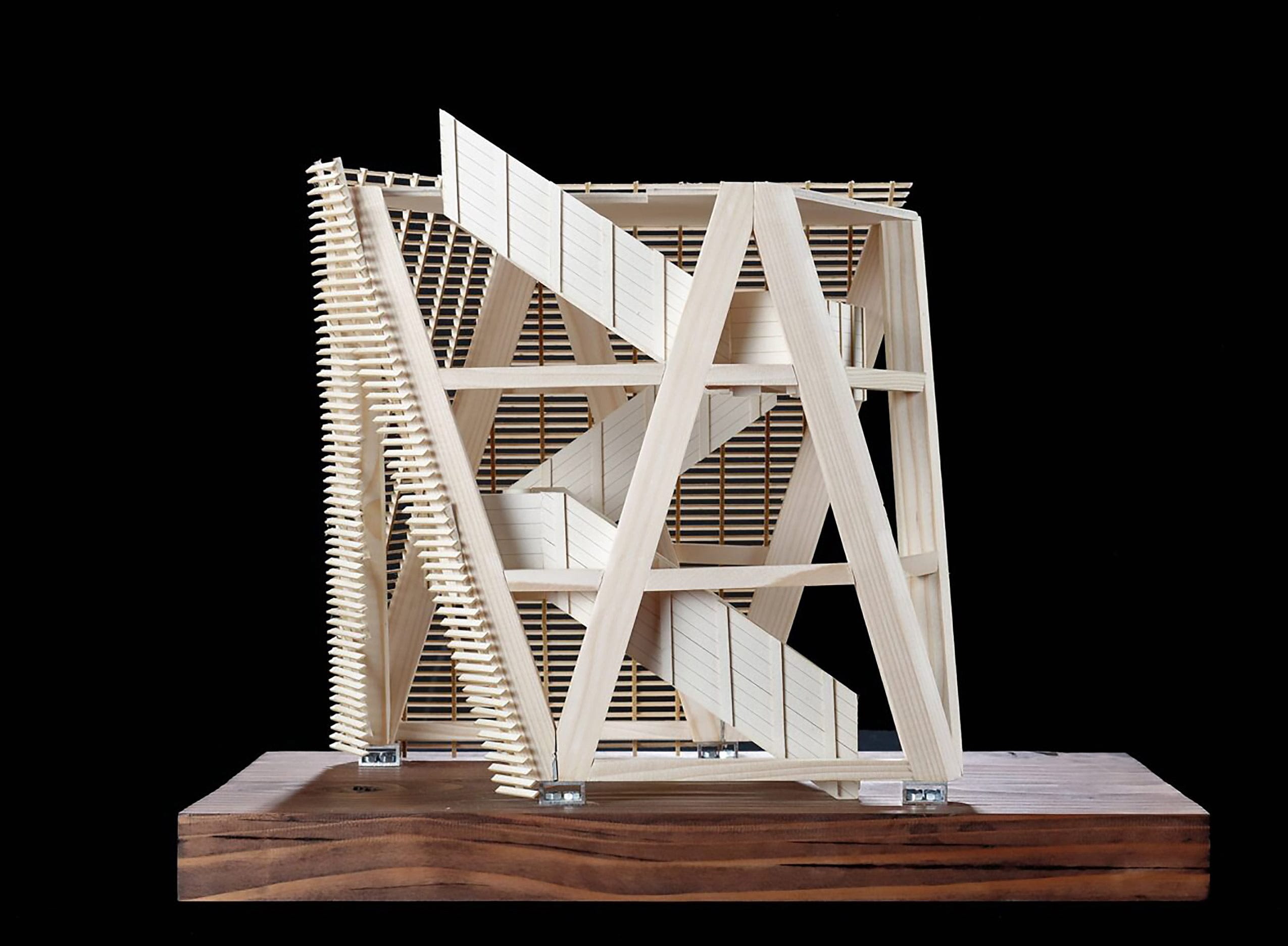 Torni on rakennettu kokonaan puusta betoniperustuksia ja liimapuupalkkien liitoksissa käytettyjä teräsosia lukuun ottamatta. 16 betonipaalua ulottuu 20 metrin syvyyteen.