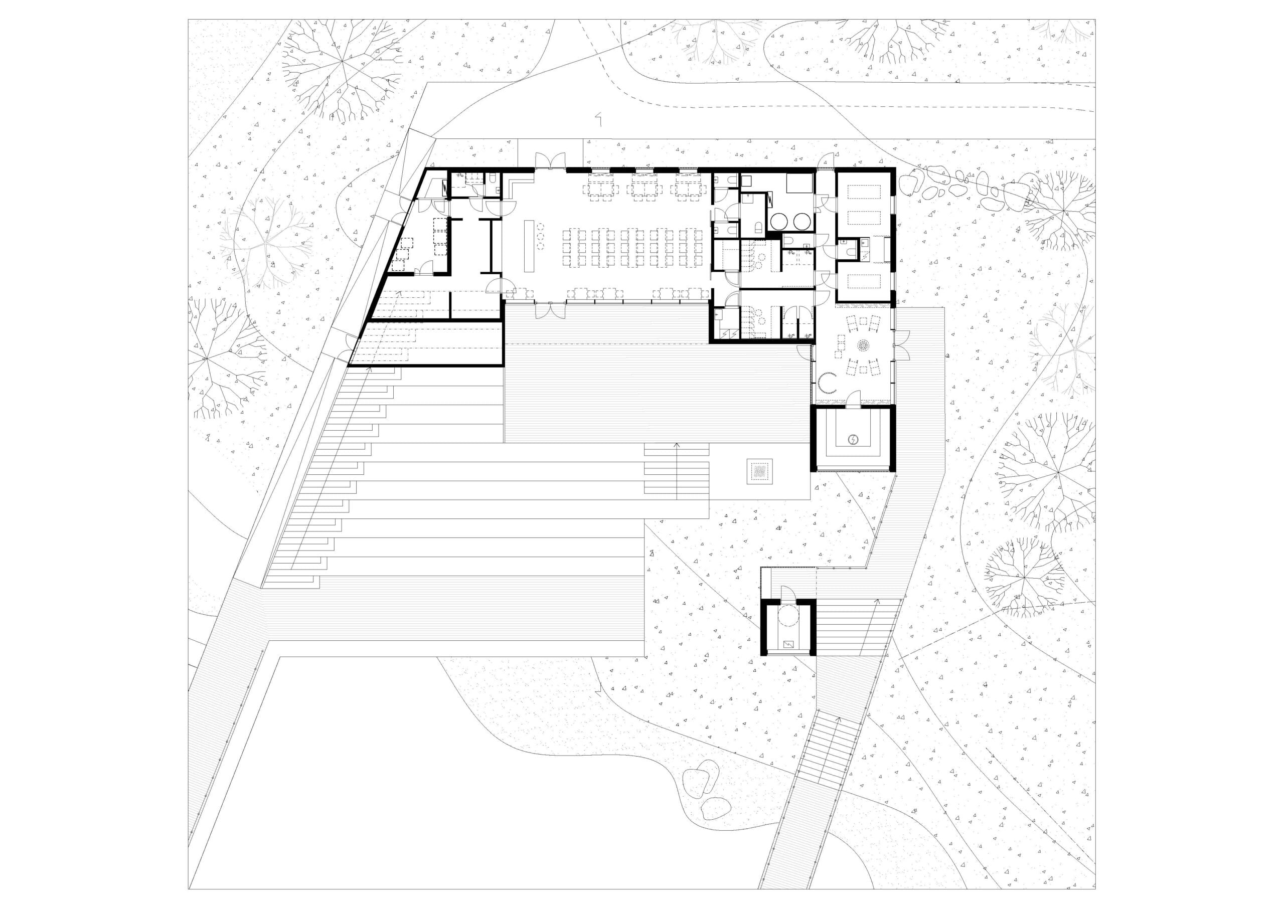 Saunaravintola Kiulun arkkitehtuuri korostaa erityisesti rantaa, joka pääsee vihdoin aktivoitumaan ansaitsemallaan tavalla. Jokainen näkymä rakennuksen sisältä kehystää järveä ja tarjoaa erilaisia hetkiä ja näkökulmia luonnonmaisemasta nauttimiseen. Saunaravintola Kiulu palvelee niin maa- kuin vesiteitse saapuvia vieraita ja laajentaa Ähtärin aiemmin rajallista palvelutarjontaa, kutsuen meidät tutustumaan toisiimme, luontoon ja jopa itseemme.