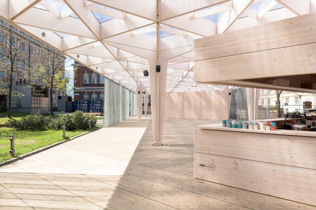 Muotonsa ja toimintansa kautta paviljonki yhdistää Arkkitehtuurimuseota ja Designmuseota. Se mahdollistaa monenlaisten toimintojen ja tapahtumien järjestämisen ja yhdistämisen. Paviljonki on designpääkaupungin sydän. Sen suunnittelivat Aalto-yliopiston opiskelijat, designpääkaupungin tulevaisuuden toivot.