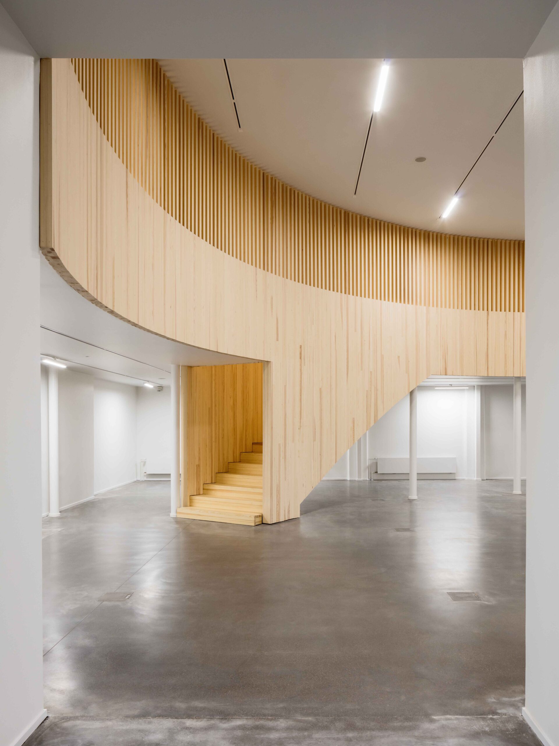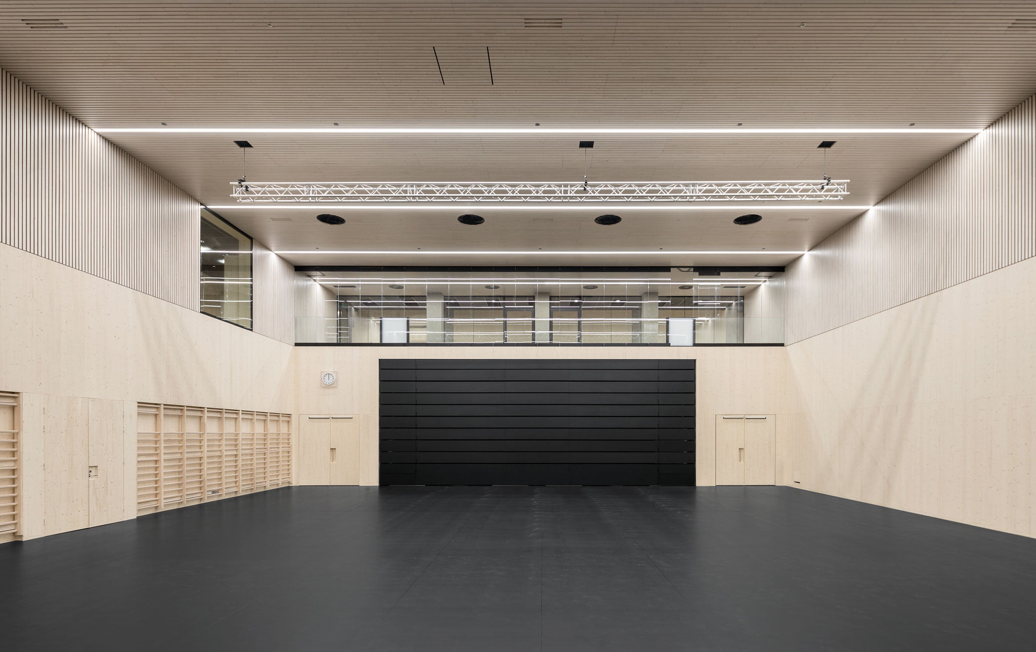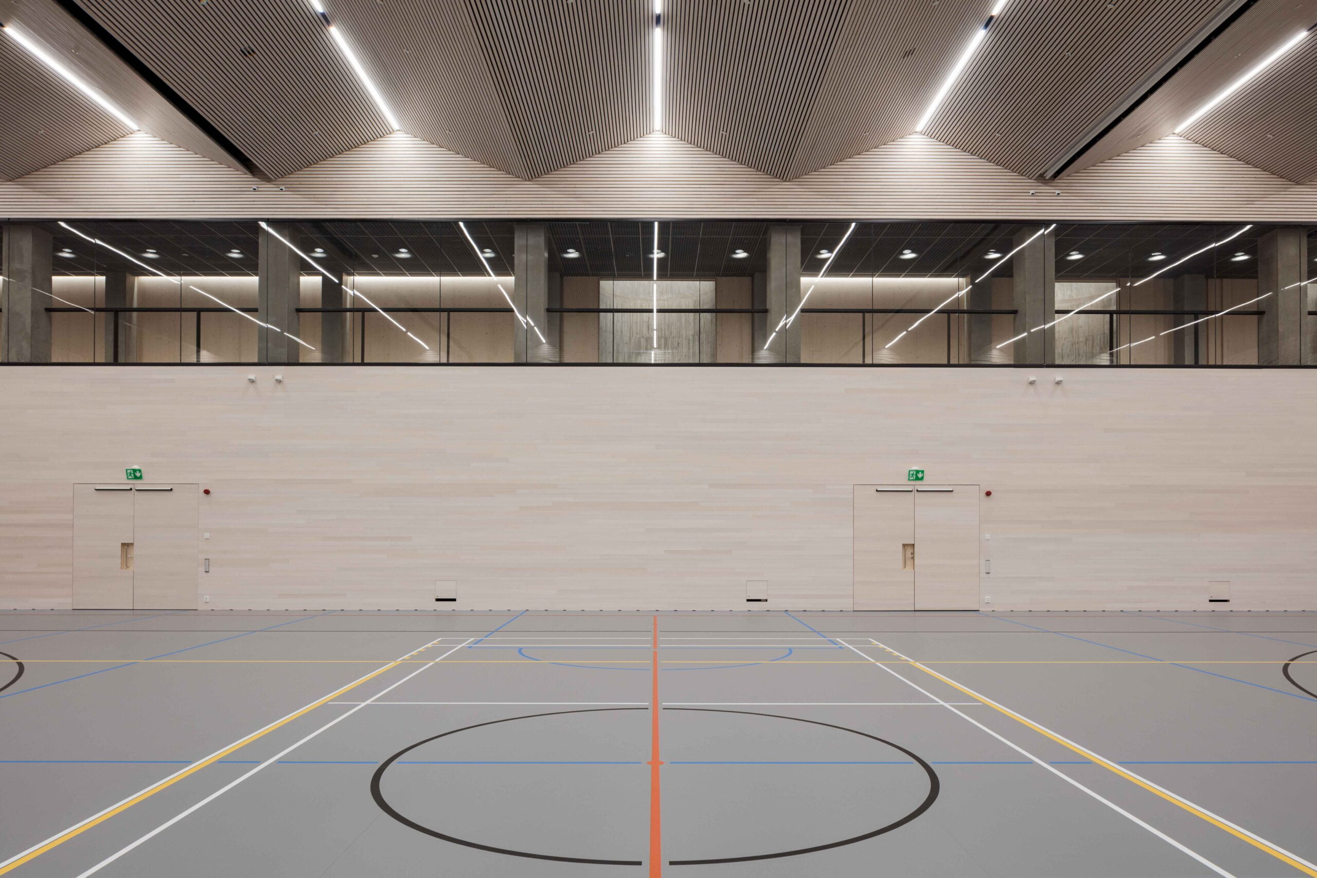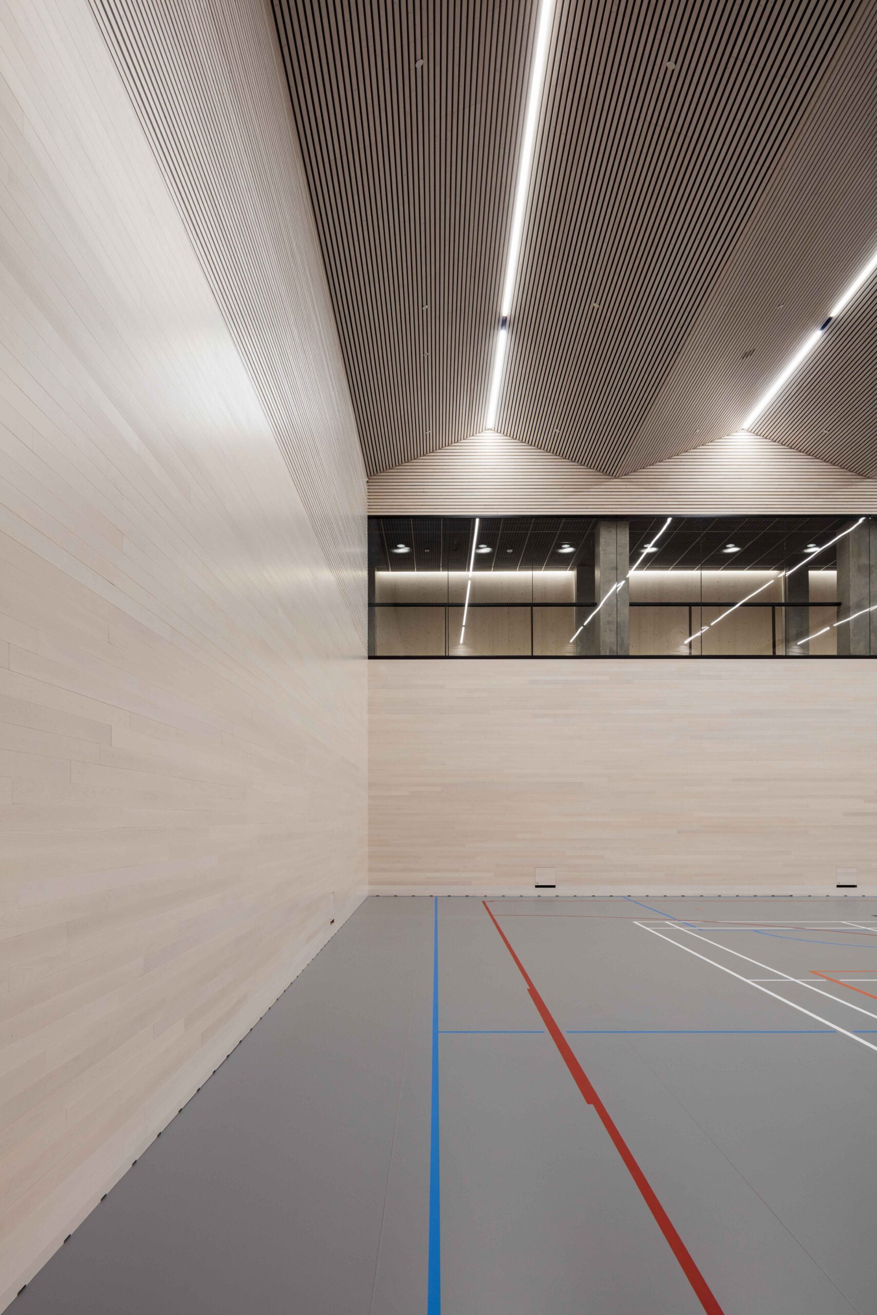 Maan alle on rakennettu stadionin toisinto; monikäyttöisiä liikuntatiloja rajaava uusi läntinen galleria, juoksuratoja seuraava tunneli, pohjoisen logistiikka- sekä koilliskaarteen monitoimitila. Materiaalit ovat ajattomia ja kestäviä; kantavat rakenteet valkobetonia, pinnat puuta ja lasia. Hiljentymistilana käytettävät valolyhdyt tuovat päivänvaloa tiloihin ja avaavat näkymiä yläpuoliseen stadioniin. Betoniset rakenteet luovat tiloihin perusrytmin, ja vaaleat puuverhoukset ovat osa kestävän kehityksen mukaista Olympia-arkkitehtuuria ja luovat muistuman 1930-luvun stadionin valkoisista muottilautabetonipinnoista.