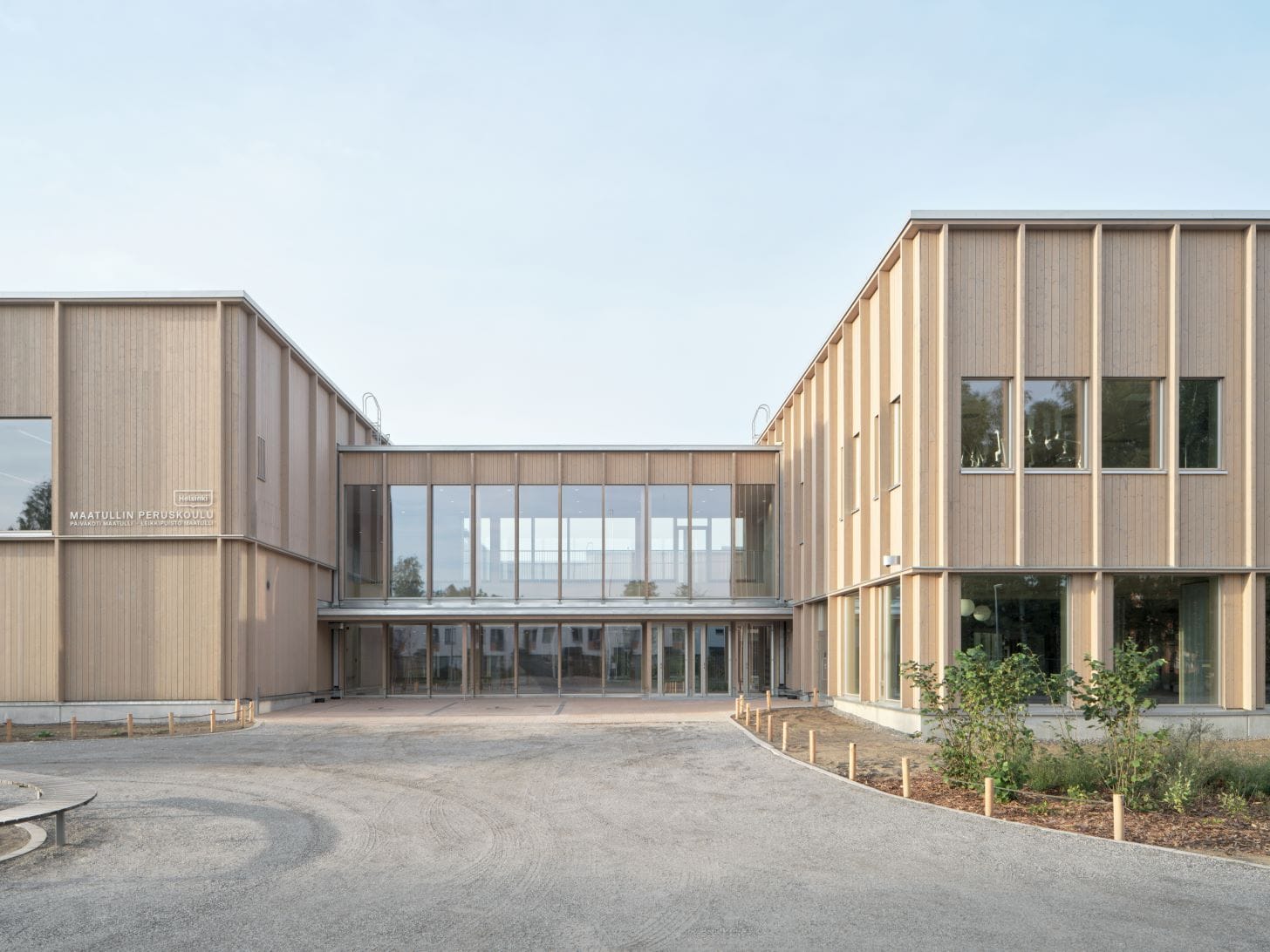 Massiivipuumoduuleista rakennettu Maatullin peruskoulu ja päiväkoti on Helsingin ensimmäisiä puisia koulurakennuksia. Puuverhoillun julkisivun pystyrimoitus on saanut inspiraationsa rakennusta ympäröivistä puista, ja se saattaa ulko- ja sisätilat dynaamiseen vuorovaikutukseen keskenään. Siipien yksilöllisyyttä on korostettu jakamalla julkisivu viiteen eri teemaan. Kotimainen kuusi valittiin tietoisesti päämateriaaliksi, jotta puun luonnolliset ominaisuudet oksineen ja syineen pääsisivät oikeuksiinsa ja konstailematon pinta patinoituisi arvokkaasti sopusoinnussa ympäristön kanssa. Vankka puumateriaali on eduksi paitsi koulun käyttäjille myös itse rakennukselle: käyttäjät nauttivat parantuneesta akustiikasta, ilmanlaadusta ja muista myönteisistä terveysvaikutuksista, ja samalla rakennuksesta tulee pitkäikäinen, helppohoitoinen, hiilijalanjäljeltään minimaalinen ja ekologisesti kestävä. Uusi puinen koulu ja päiväkoti istuukin luontevasti Helsingin kaupungin visioon rakentaa kestäviä rakennuksia ja vahvistaa esikaupunkialueiden positiivista kehitystä.