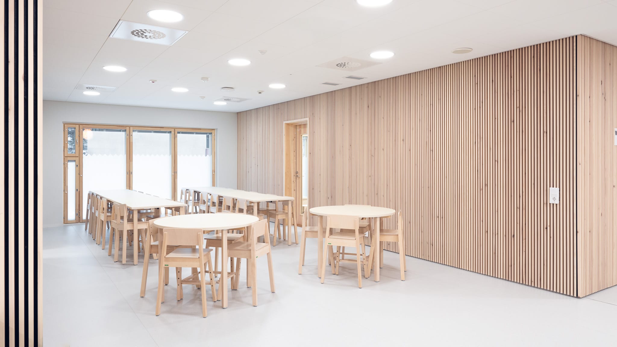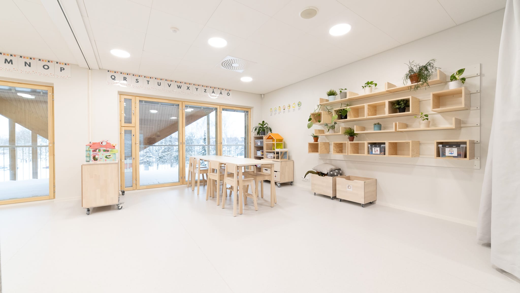 Vanhaisen päiväkodissa ollaan havupuisessa pesässä. Puuhun kaikissa eri muodoissaan päädyttiin, koska sitä voi huoltaa, ja se vanhenee kauniisti.