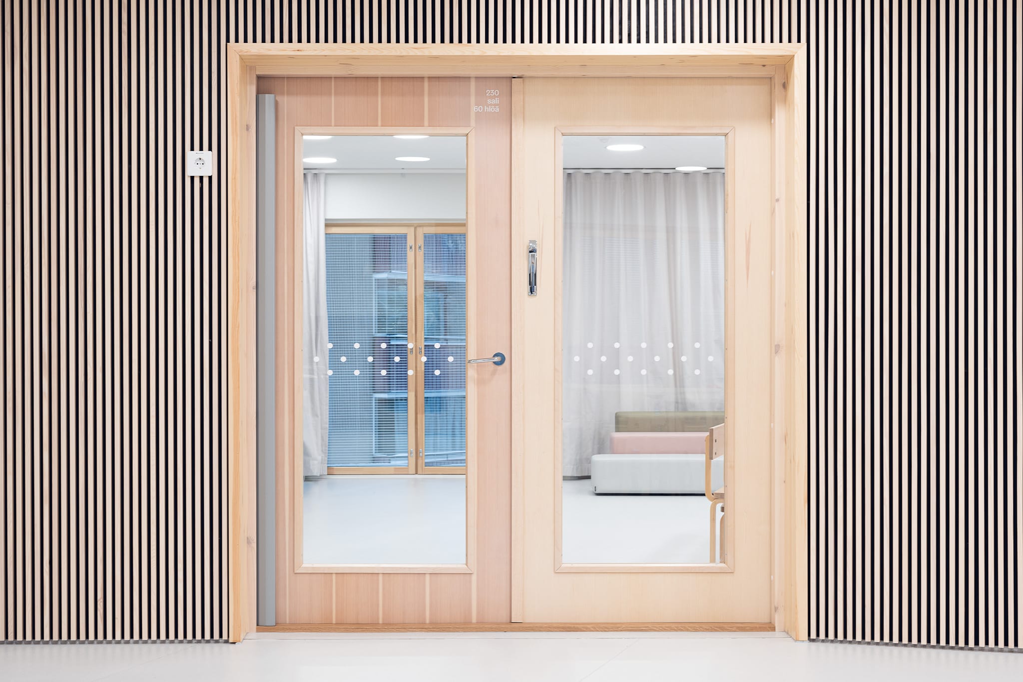 Olemme iloksemme saaneet käyttäjiltä paljon kiitosta talon pienimittakaavaisesta tunnelmasta ja akustiikasta. Talon pintojen puu on materiaalina lempeä, pehmeä, rauhoittava ja ajaton.