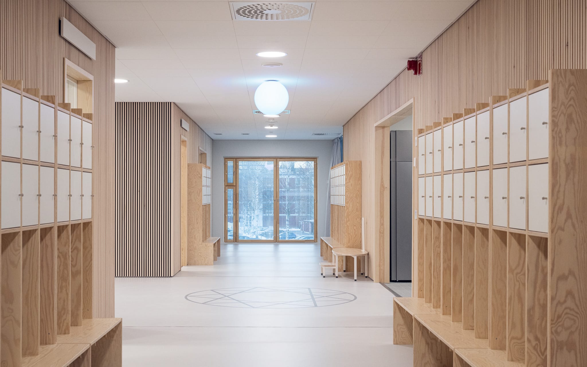 Talon pohjaratkaisu on yksinkertainen ja helposti suunnistettava. Jokaisen lapsiryhmien tilaparin sydämenä on valoisa oma eteinen ja ruokailutila, josta avautuu näkymiä Soittajantielle. Ruokailutila antaa mahdollisuuden myös isompiin leikkeihin ja kokoontumiseen liikuntasalin lisäksi. Talon kapea runko sallii runsaasti valoa sisätiloihin. Talon keskialuetta yhdistää leveä toimintakäytävä, jossa voi leikkiä, liikkua, säilyttää ja askarrella. Tämä mahdollistaa tilaryhmien välisen jouston ja yhteisöllisyyden. Iltakäyttöön soveltuvat tilat ovat helposti rajattavissa ja saavutettavissa rakennuksen keskellä. Toiminta-alueet on suunniteltu elinkaarikestävyyden ajatuksella mahdollisimman toistuviksi siten, että samat kalusteet sopivat moniin tiloihin.
