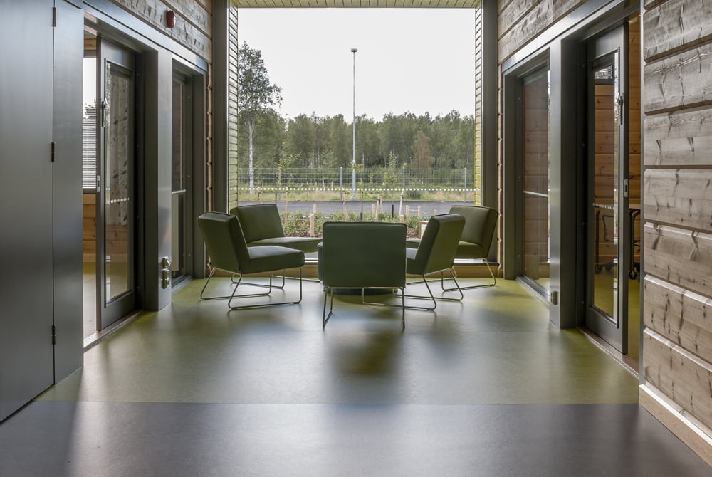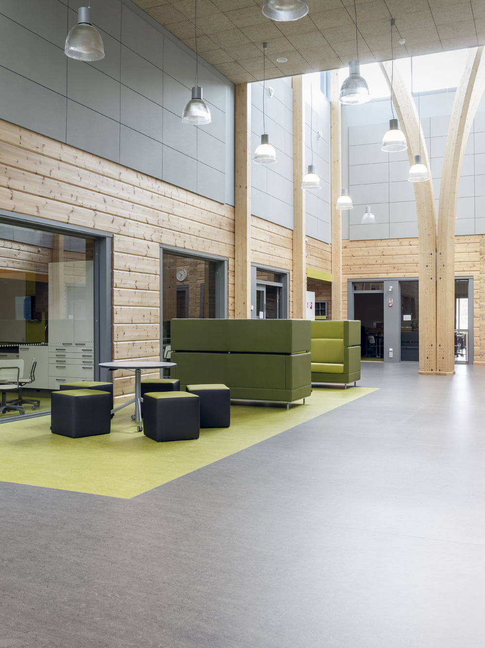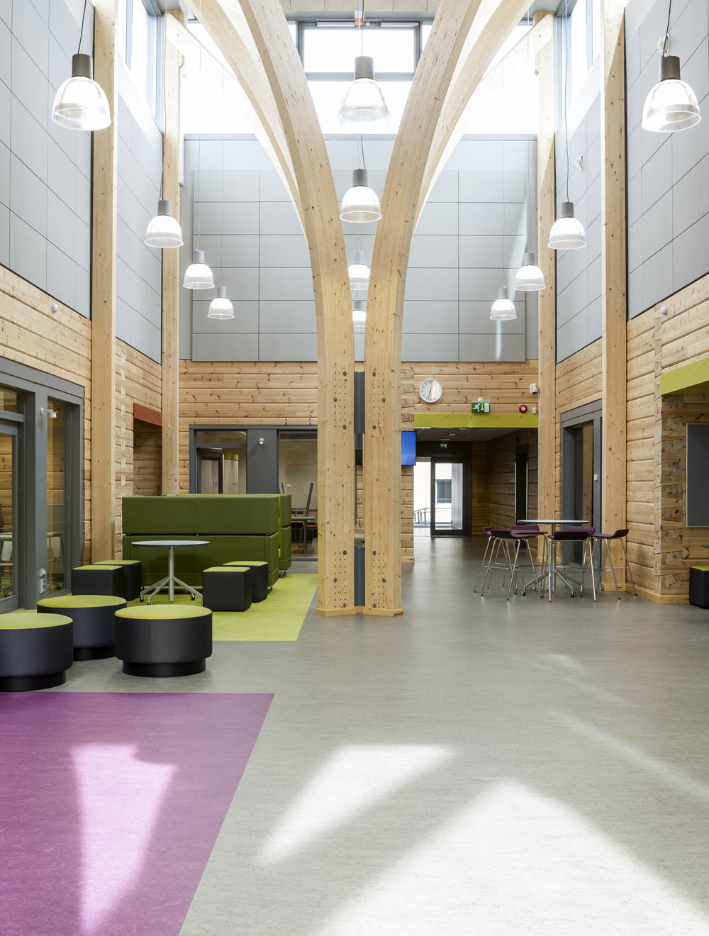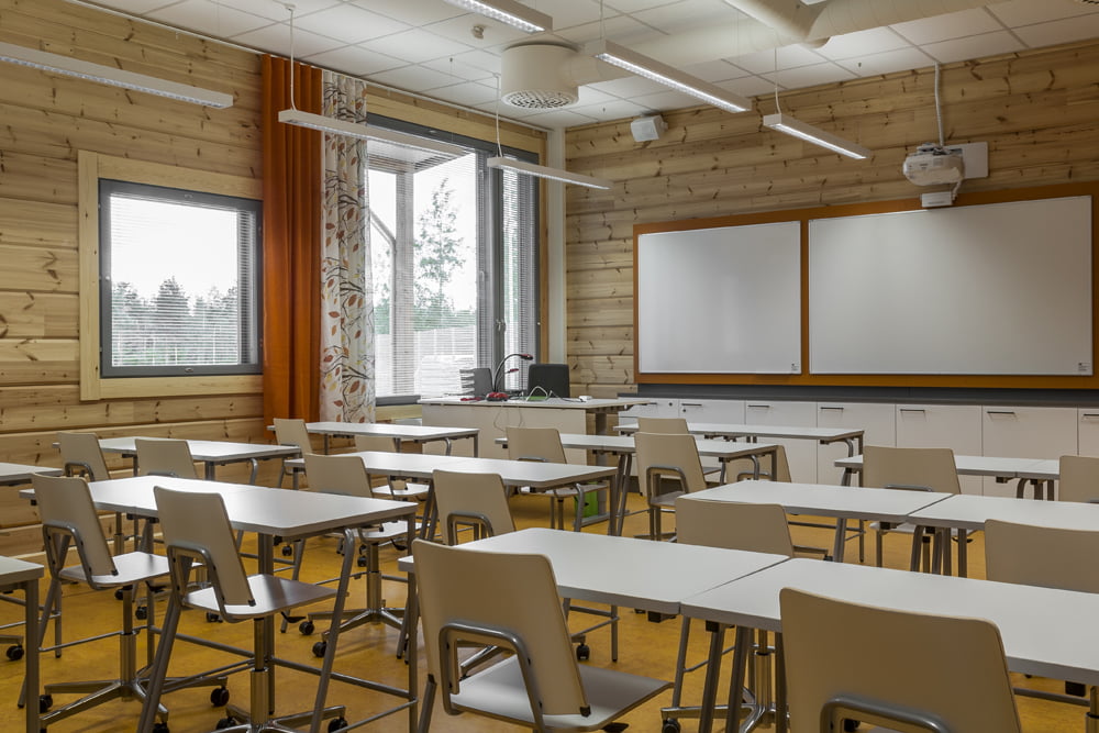 Rakennuksessa kulkiessa kiinnittyy huomio erinomaiseen akustiikkaan, jonka hirsipintaiset seinät saavat aikaan. Myös sisäpintojen harmoninen ulkoasu ja miellyttävä tuoksu luovat edellytykset hyvälle oppimisympäristölle.