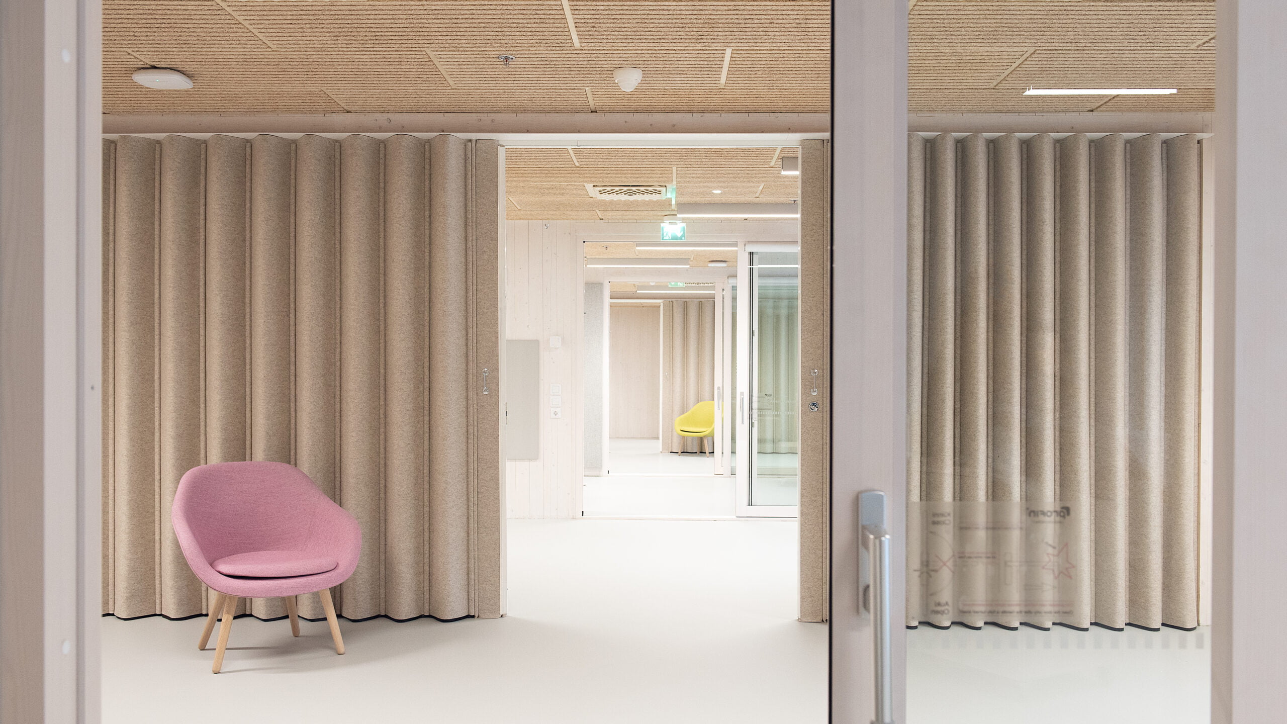 Toiminta-alueiden tilat on suunniteltu joustavan avoimiksi ja selkeän muotoiset toimintatilat tukevat eri kokoisten pienryhmien toimintaa. Käytäviä ei ole ja tilat voivat liittyä toisiinsa myös ilman kiinteitä väliseiniä. Siirrettävillä säilytyskalusteilla sekä tilanjakajilla voidaan tiloille luoda useita eri käyttötarkoituksia. Osa kunkin toiminta-alueen tiloista on tehty tehokkaammin äänieristettyinä huoneina, joissa voidaan nukkua siirreltävillä ja pinottavilla kevytsängyillä sekä patjoilla.