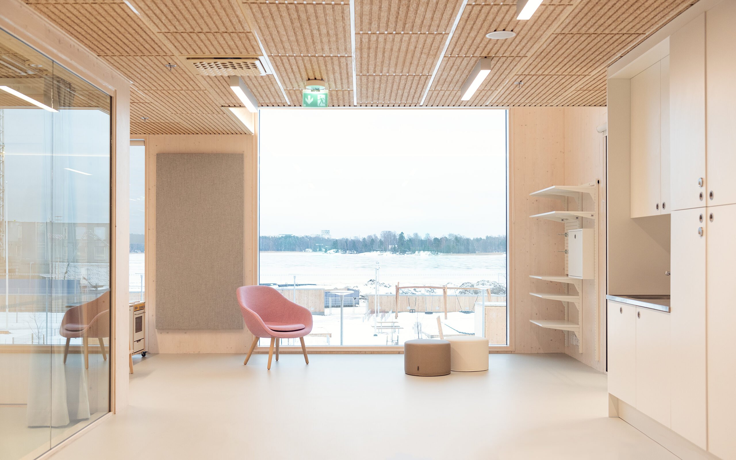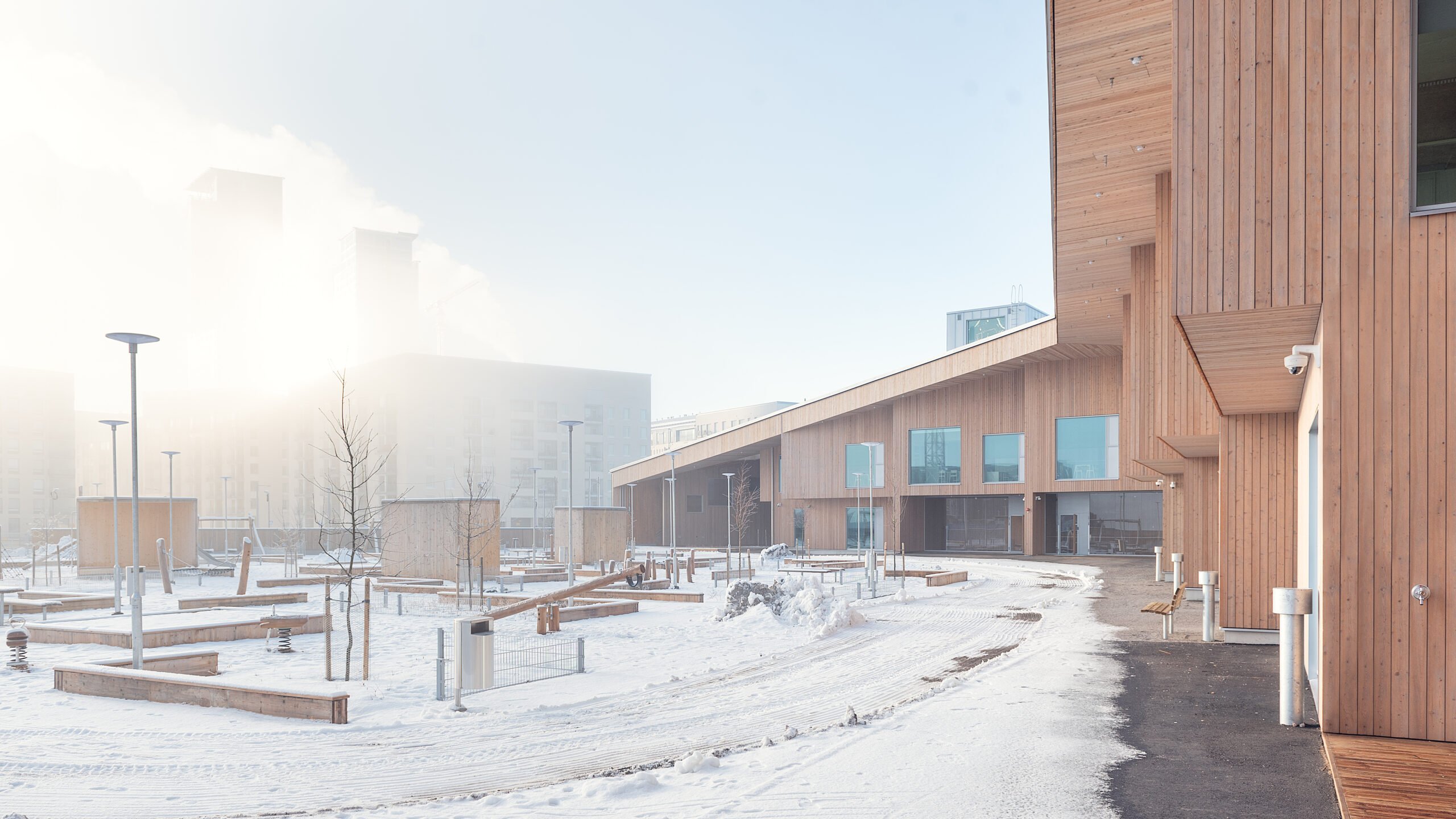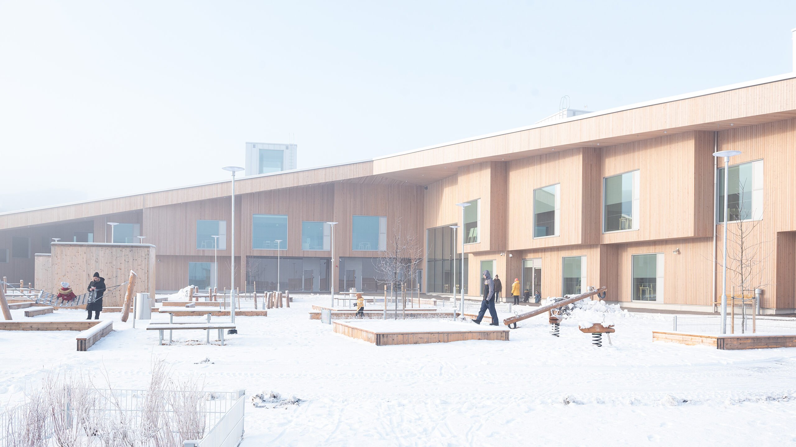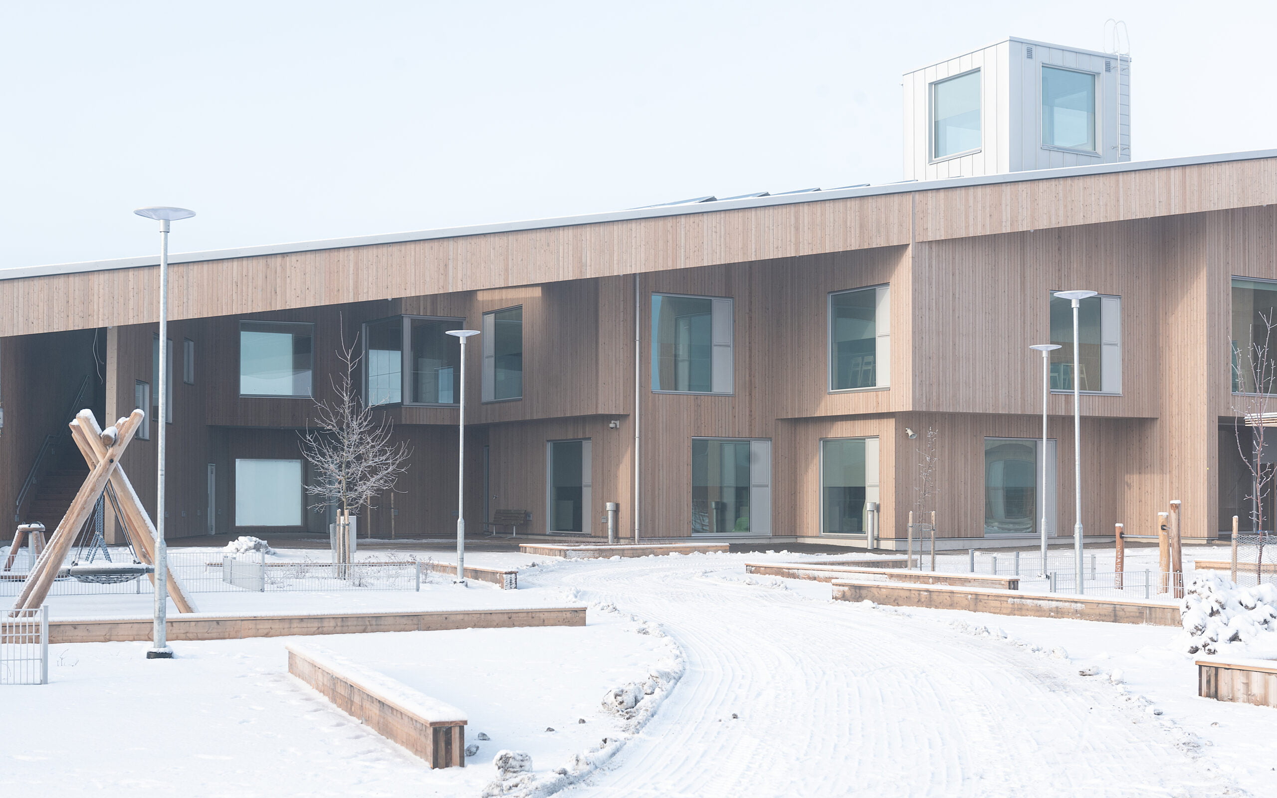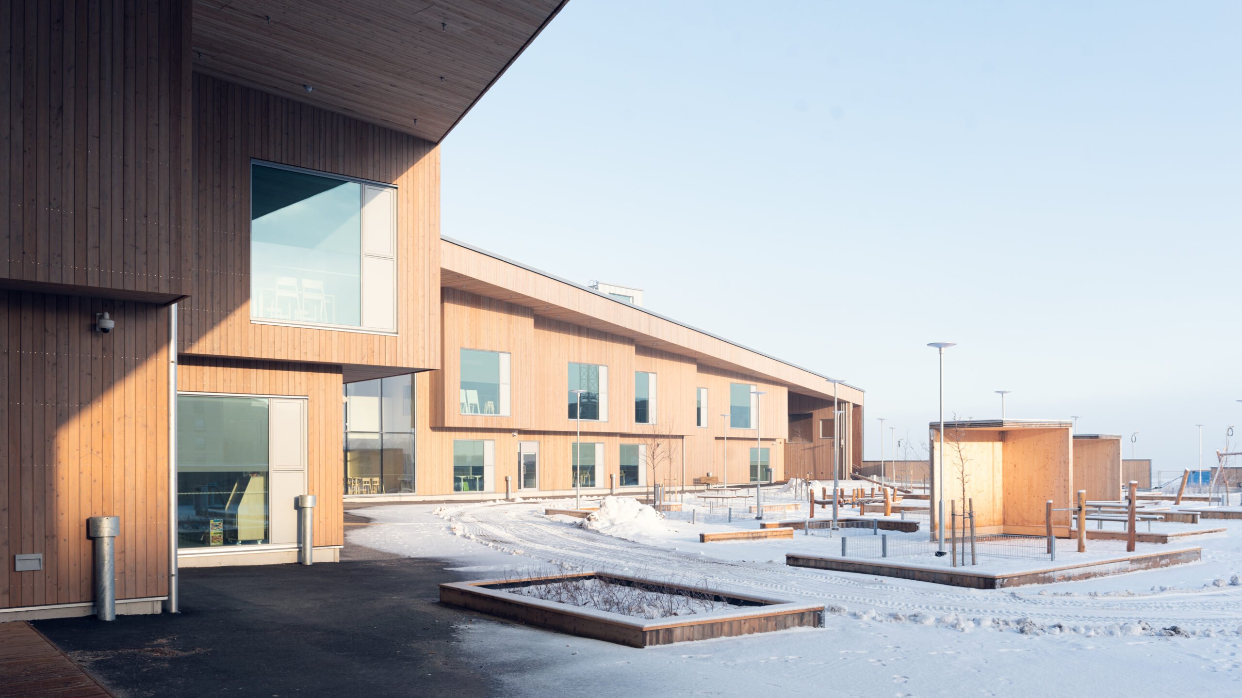 Verkkosaaren uudelle asuinalueelle rakentunut CLT-rakenteinen päiväkoti avasi ovensa alkuvuodesta 2023. Päiväkoti on yksi Helsingin suurimmista.