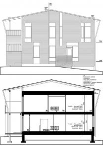 Talot rakennettiin paikalla tehdyistä elementeistä platform- tekniikkaa soveltaen. Valmiit elementit nostettiin paikalleen nosturilla. Verhous tehtiin paikalla valmiiksi pintakäsitellyistä paneeleista. Vesikatto ja yläpohja tehtiin räystäskouruja myöten valmiiksi maassa ja nostettiin paikalleen 10 tonnin autonosturilla. Urakoitsijan ideoima kokeilu onnistui erinomaisesti.