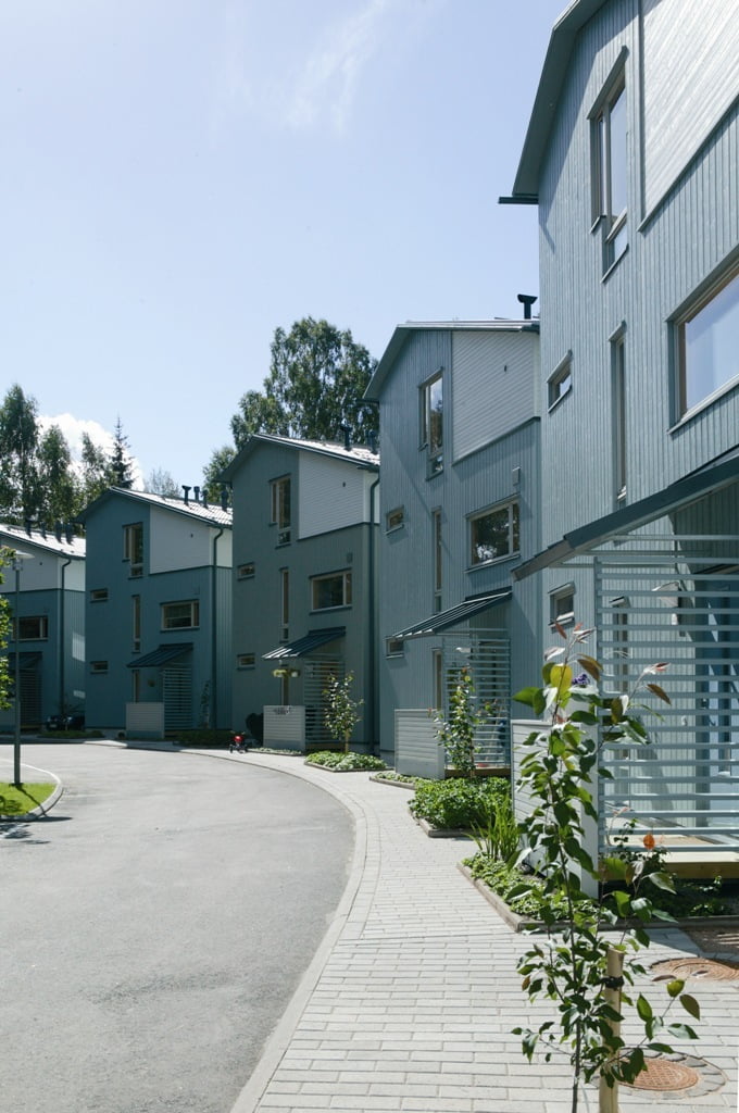 Talotyyppejä on viisi ja niiden pinta-alat vaihtelevat 87,5 -141 m2 välillä. Kullakin tyypillä on oma, erilaista elämäntyyliä edustava luonteensa. Perustyypeistä on useita muunnelmia ja niiden suunnittelun haasteena olivat ulkotilojen yksityisyys, näkymät ja palotekniset kysymykset. Talotyyppien vaihtelu luo rikasta kaupunkikuvaa ja niiden identtiset piirteet ja yksityiskohdat sitovat alueen osatekijät ympäristölliseksi kokonaisuudeksi.
