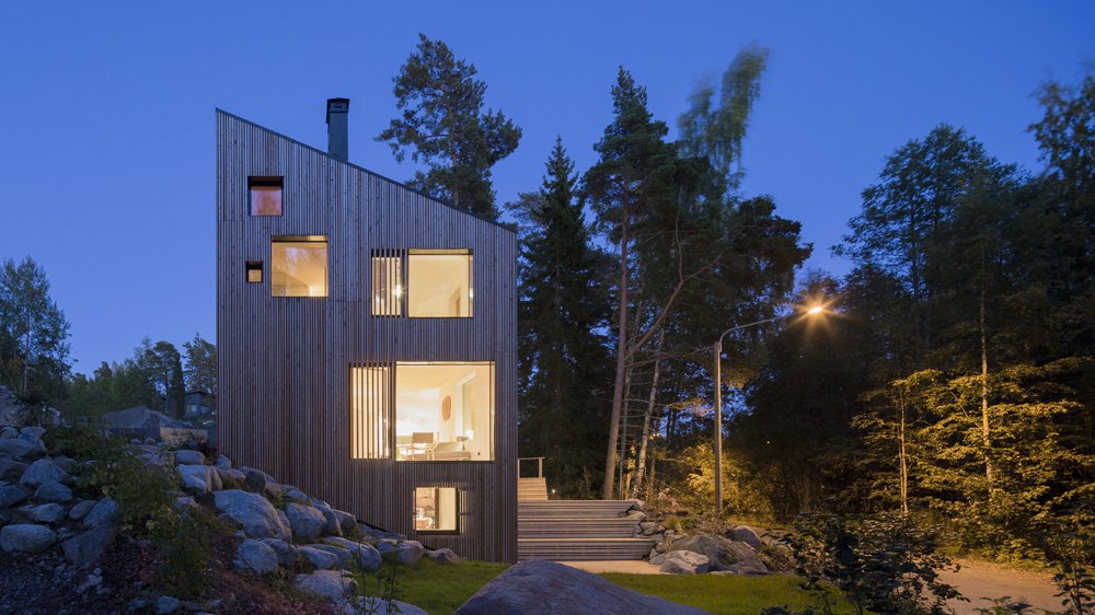 ORTRAUM arkkitehtien projekti MK5 rakennettiin arkkitehtitoimiston osakkaalle ja hänen viisihenkiselle perheelleen. Rakennus sijaitsee lounaaseen viettävällä 500 m2:n tontilla Jollaksessa, Helsingin keskustan itäpuolella. Rakennuksen arkkitehtuurissa on keskellä loiva kulma, jotta saadaan (suomalaiseen tapaan) vältettyä suoraa näkymää naapuriin. Samalla rakennuksen oleskelutilat on saatu aukeamaan länteen, merta kohti. Rakennuksen suhde ympäröivään luontoon inspiroi sijoittamaan ikkunat eri puolille, jotta ne kehystävät eri ilmansuuntiin avautuvia, valon mukaan vaihtuvia näkymiä. Ensimmäisessä kerroksessa olevaan avoimeen olohuoneeseen pääsee pohjoisen puolella olevasta sisäänkäynnistä. Saunaosasto ja kiinteistötekniset tilat sijaitsevat kellarikerroksessa. Yläkerrassa on neljä makuuhuonetta. Pohjakaavan geometrisuus tulee hyvin esiin keskikerroksessa, jossa kulkuväylät kolmeen lastenhuoneeseen ja vanhempien makuuhuoneeseen kohtaavat rakennuksen keskellä mahdollistaen monenlaisen vuorovaikutuksen ennen nukkumaanmenoa.