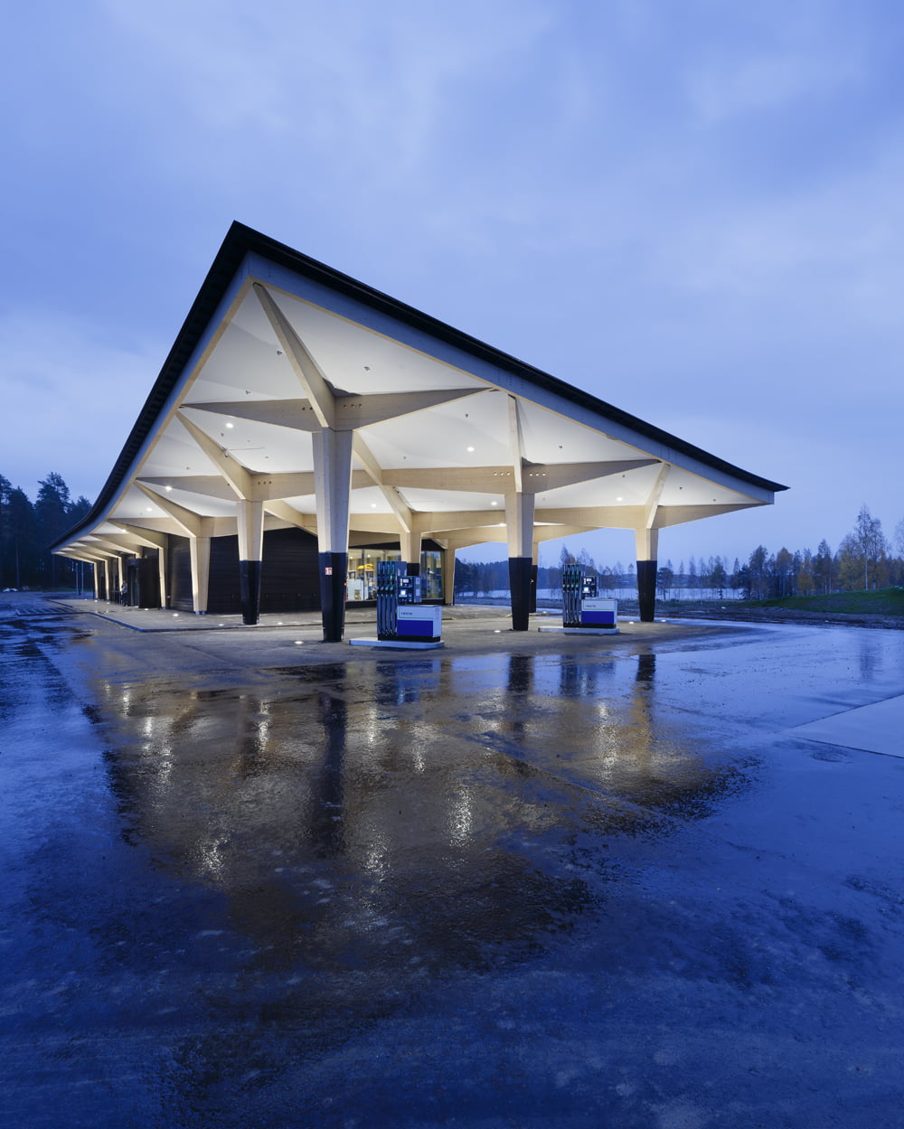 Rest Area Niemenharju is not your typical service station. It offers a retreat from traffic and a peaceful environment to enjoy the surroundings, local food and a good night sleep. All of this is achieved through structural wooden architecture that is innovative, out of the ordinary and sustainable.