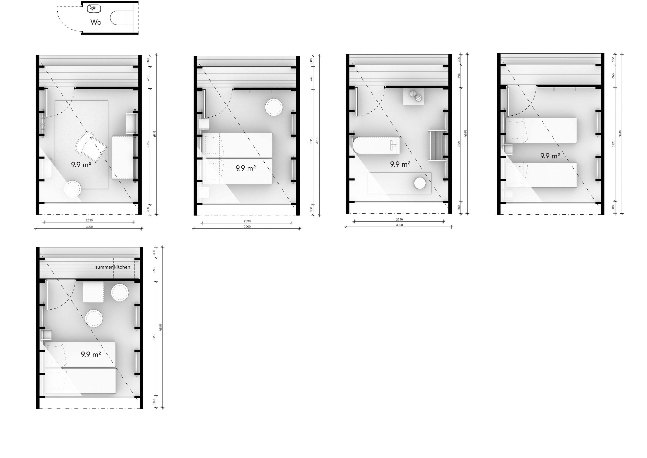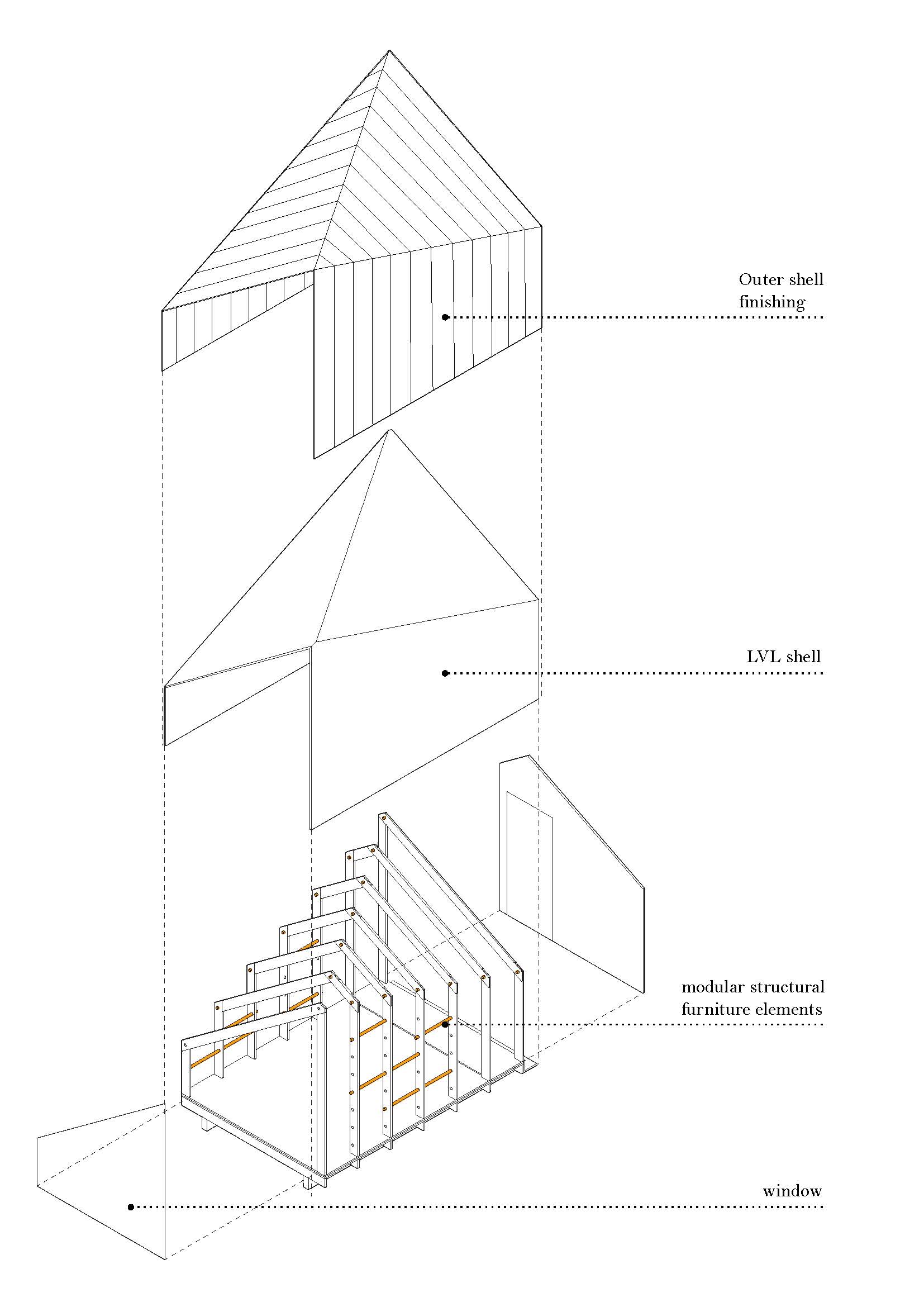 Suunnittelussa on erityisesti panostettu monipuolisuuteen ja muunneltavuuteen. Puinen ulkorakenne on kuin tyhjä kanvaasi, ja sisätiloja voi muunnella mieltymysten mukaan niin kuntosaliksi kuin kotitoimistoksi.