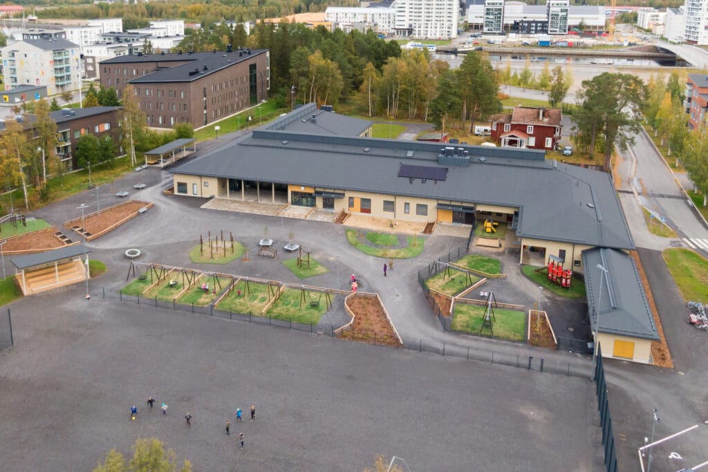 Rakennusta käyttävät päiväkotilapset, esikoululaiset sekä peruskoululaiset ensimmäisestä yhdeksänteen luokkaan asti. L-mallinen pohjaratkaisu ohjaa kasvun polkua: päiväkodista kuljetaan alkuopetuksen kautta alaluokkasiipeen, josta jatketaan yläluokkalaisten aineopetustiloihin monitoimisalia sivuten.