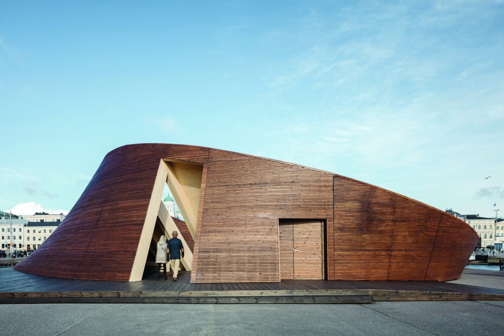 The Helsinki Biennale pavilion was built as the starting point for the Helsinki Biennale art event organized on Vallisaari island in summertime. The building also serves as an open, seaside living space for the townspeople. The shape of the wooden pavilion is inspired by Vallisaari’s rock ponds.