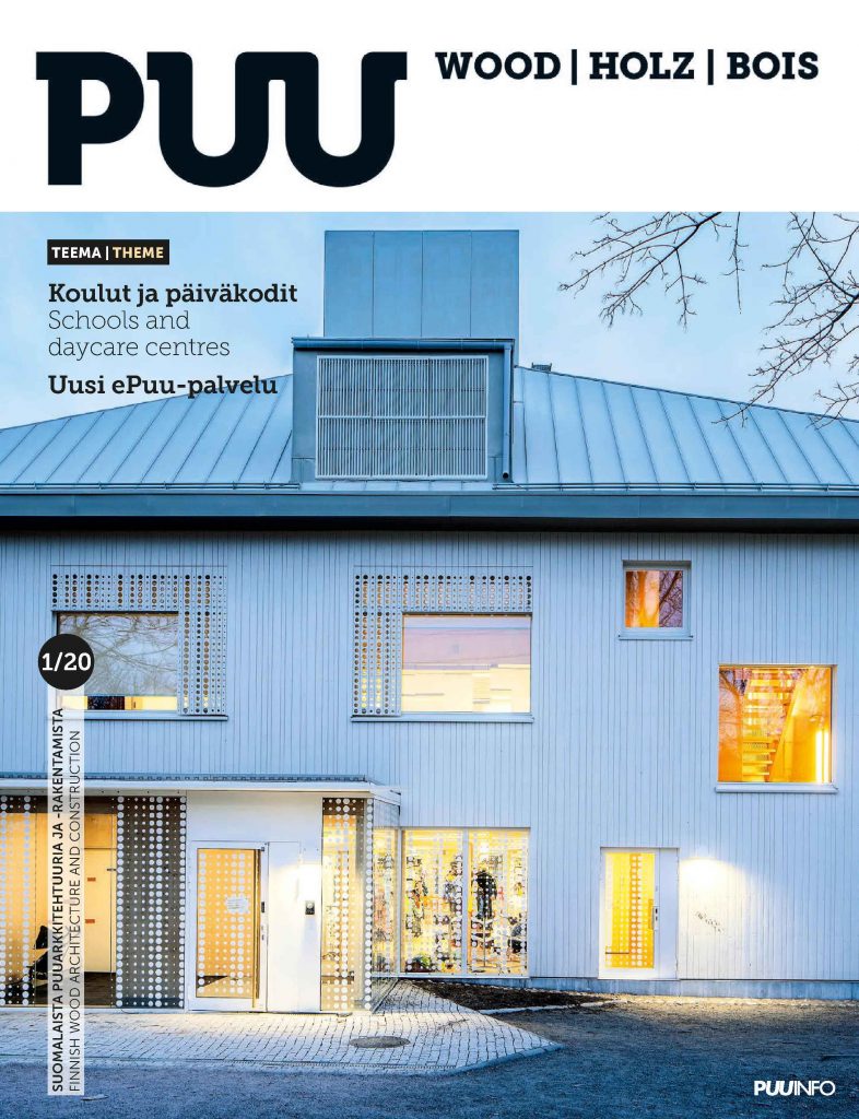 Teemoina koulut, päiväkodit ja uusi ePuu-palvelu. Numerossa esitellään Puuinfon uusi ePuu-palvelu, joka helpottaa puurakennushankkeiden valmistelua ja vastaavan keskeisiin puun käytössä askarruttaviin kysymyksiin.
